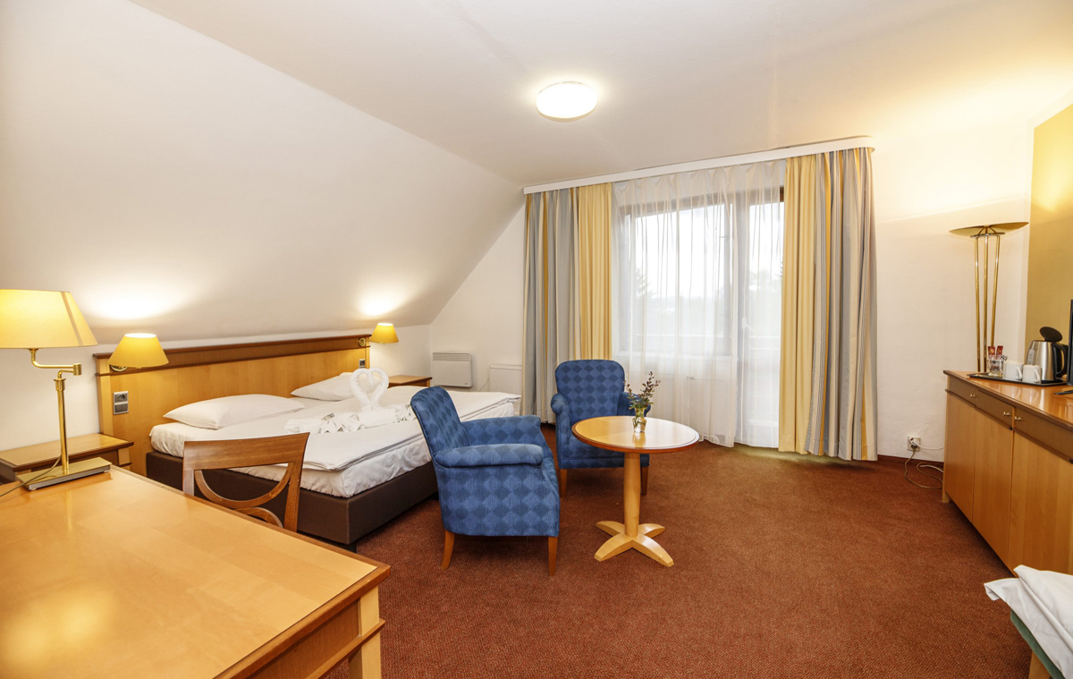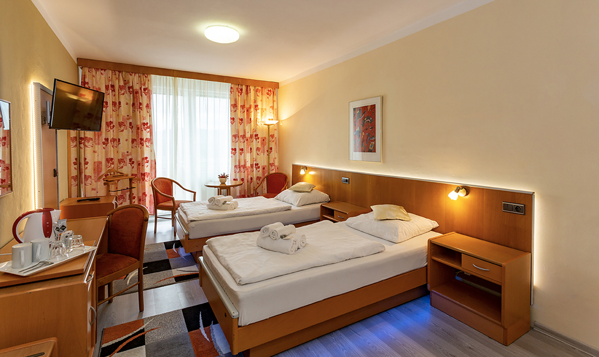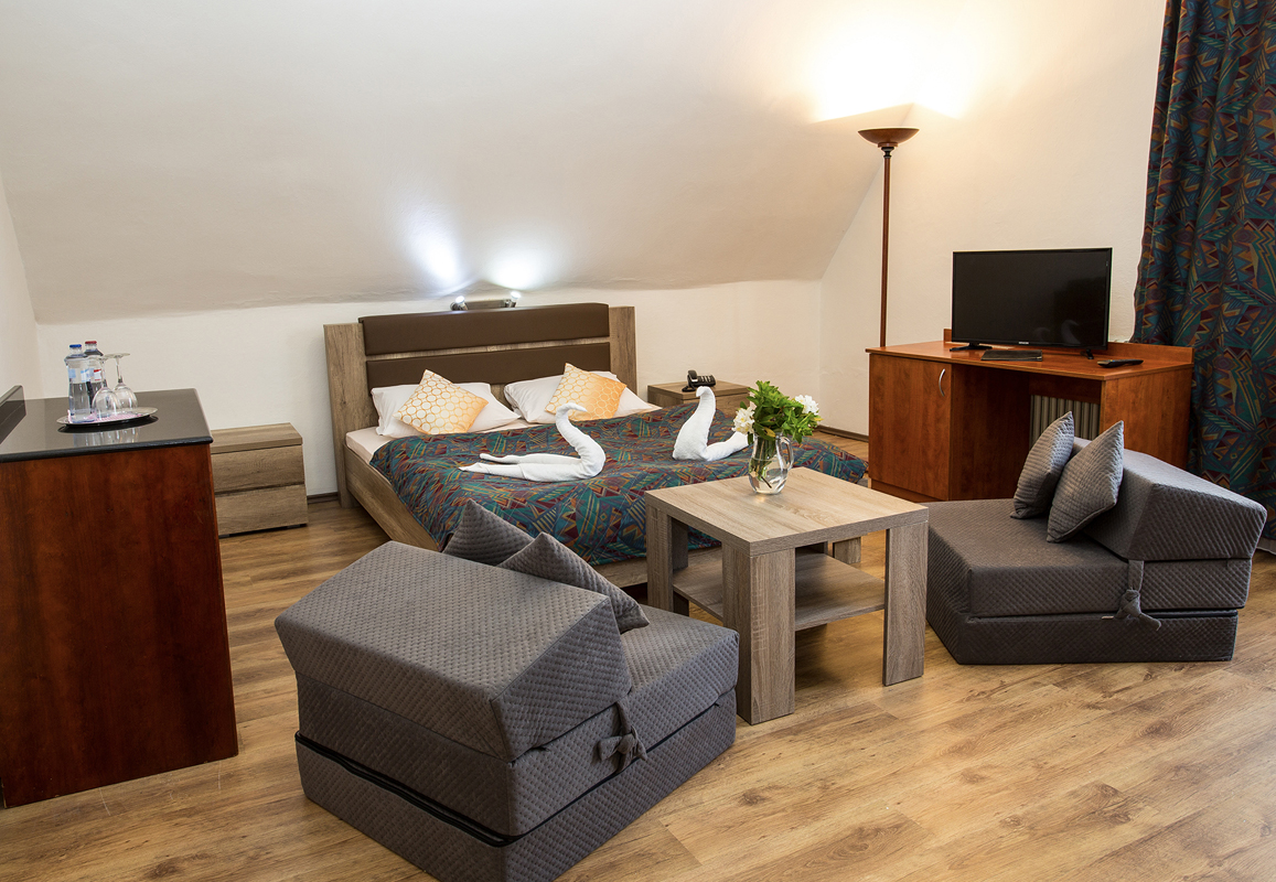 25 m² – izba s manželskou posteľou alebo 2 samostatnými lôžkami, možnosť 1 prístelky, sociálne zariadenie, balkón