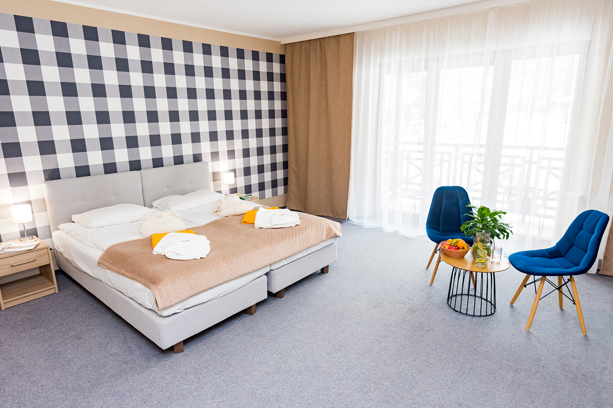 20 m² – izba s 2 samostatnými lôžkami, obsadená 1 dospelou osobou (prípadne 1 osoba a dieťa), sociálne zariadenie so sprchou, balkón