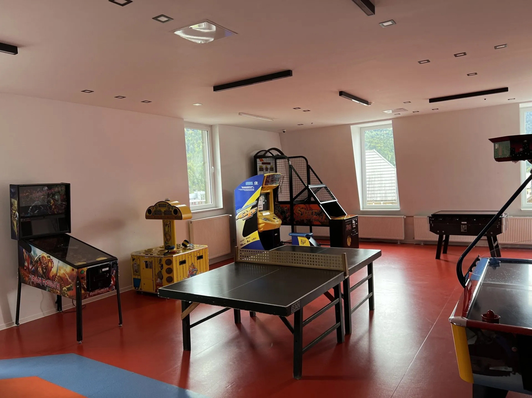 recepcia, reštaurácia, bar, konferenčná sála až pre 100 osôb, úschovňa lyží a bicyklov, miestnosť na úschovu batožiny, výťah, detská herňa, vyhradené parkovisko, Wi-Fi pripojenie na internet