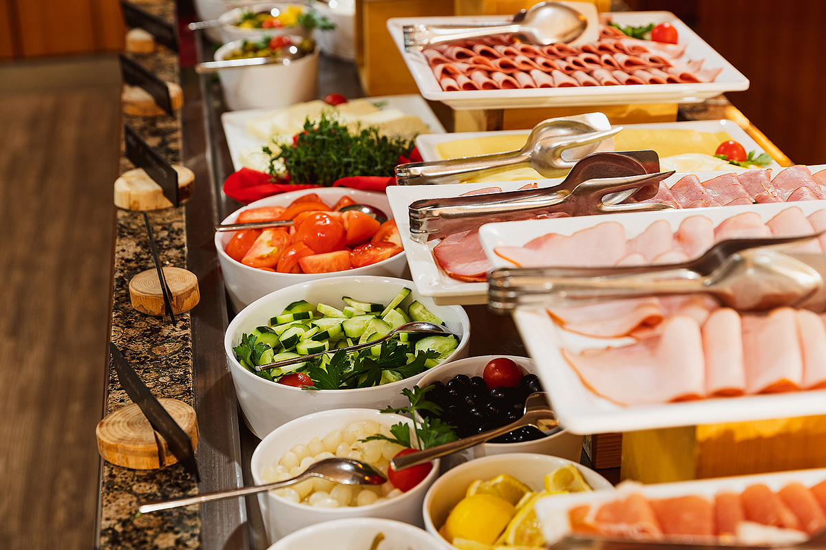 fakultatívne za príplatok - formou medzinárodného bufetu v hotelovej reštaurácii; nápoje za poplatok (nutné objednať vopred)