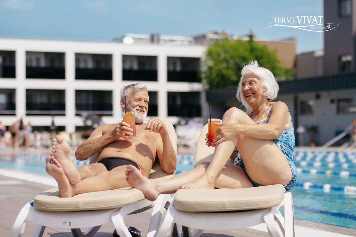 Bazénový komplex Terme Vivat zahŕňa približne 2000 m² vodnej plochy s vnútornými aj vonkajšími bazénmi. Termálna voda v kúpeľoch Vivat je hydrogénuhličitano-chlorido-sodného typu a má uznávaný status prírodného liečivého prostriedku. Kúpanie v tejto vode má mimoriadne pozitívny vplyv na organizmus – osviežuje ho, zlepšuje krvný obeh, znižuje nervové napätie a pomáha pokožke rýchlejšie sa opáliť.
