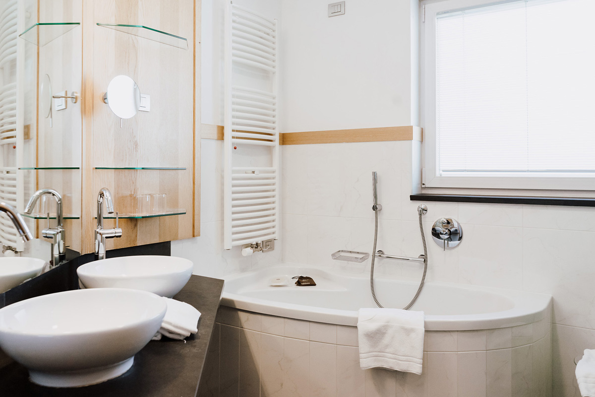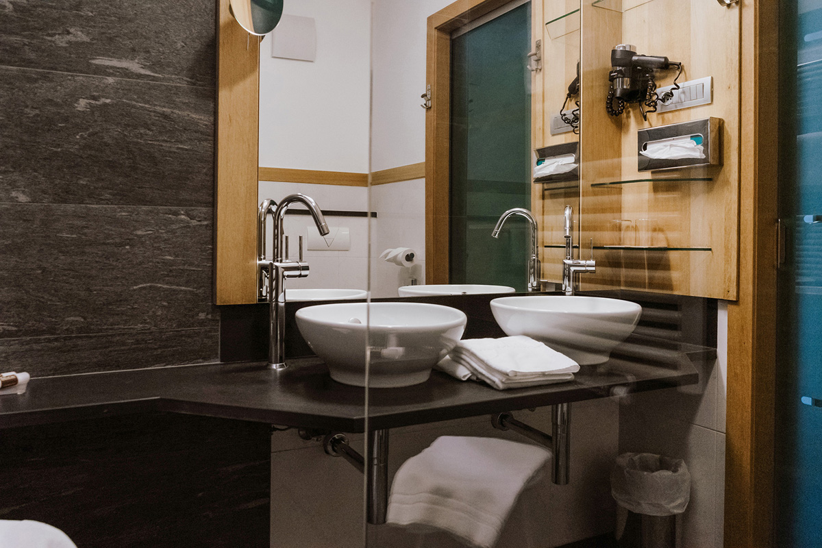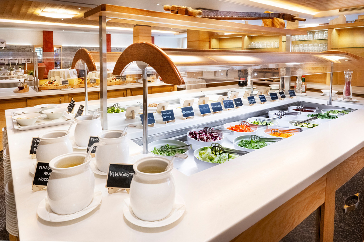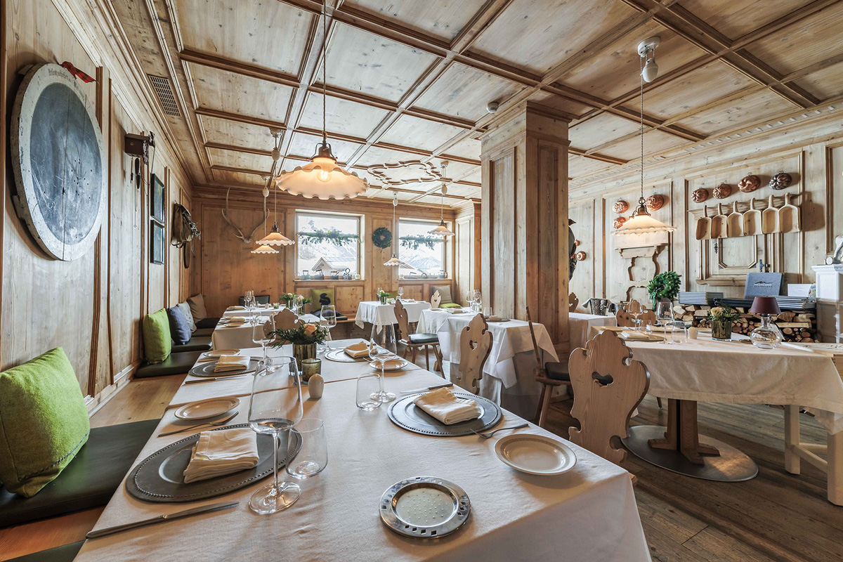 vybavenosť a služby - recepcia / veľká lobby s krbom, 3× reštaurácia – hlavná (zahrnutá v cene ubytovania), Stua da Legn (s vegetariánským menu, za poplatok) a panoramatická fondue reštaurácia à la carte (za poplatok), 2× bar / piano bar každý večer, slnečná terasa s ležadlami, ďalšie spoločenské priestory, kongresová sála až pre 70 osôb, Wi-Fi pripojenie na internet, hotelový trezor, 2× výťah, vyhradené parkovisko / nabíjacia stanica* (rýchle do 100 kW), garážové státia, uzamykateľná úschovňa bicyklov so servisným a umývacím kútom, požičovňa elektrobicyklov*