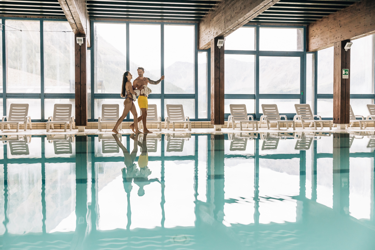 ponuka Blu Hotel Senales Zirm – Cristal – bazén 25 × 10 m s ležadlami, vírivka#*, sauna#*, para#*, relaxačný kútik#* s ležadlami, Kneippov chodník#*, masáže#*, posilňovňa#; služby označené # môžu využívať len osoby od 16 rokov; nová vonkajšia panoramatická fínska sauna na terase Aparthotelu Maso Corto* (na požiadanie)