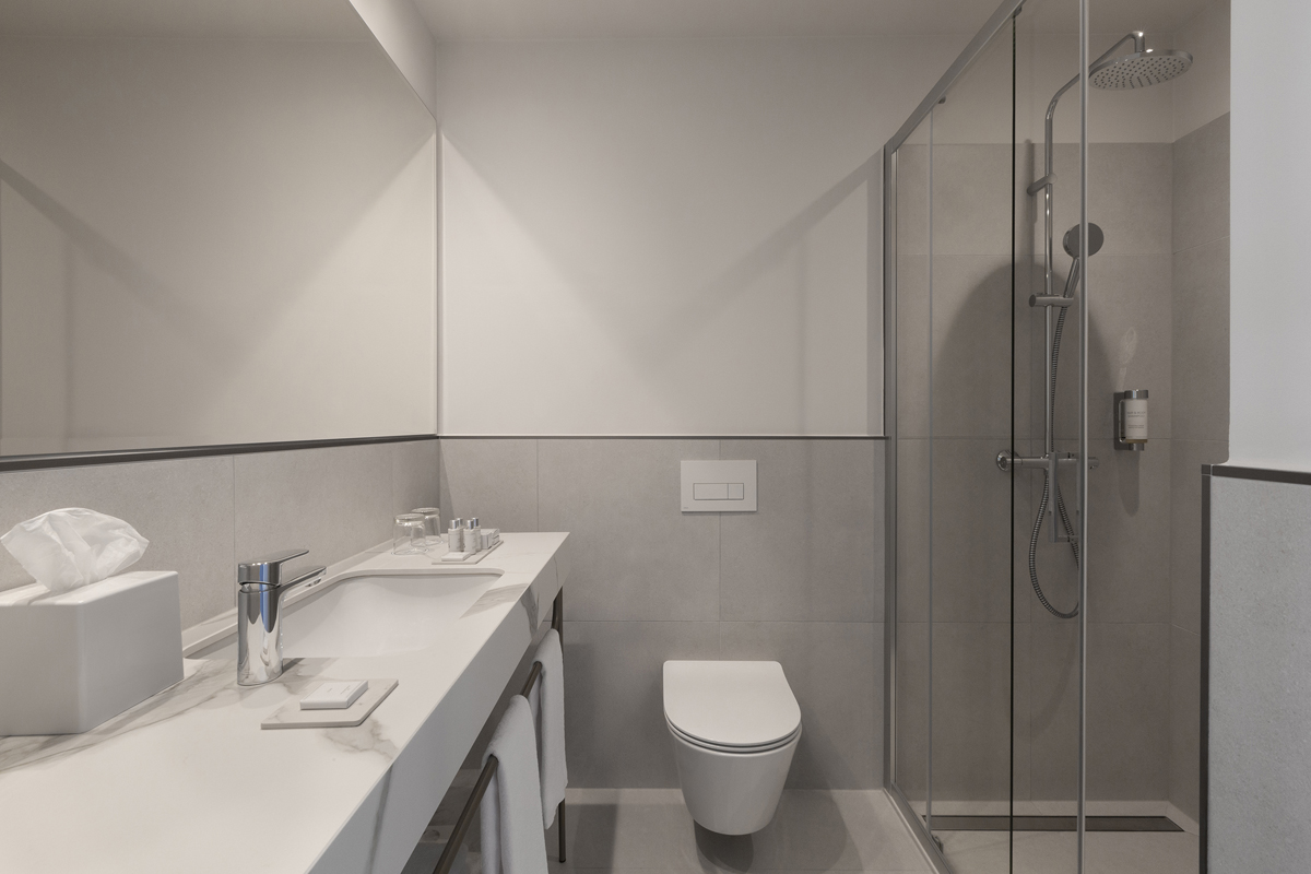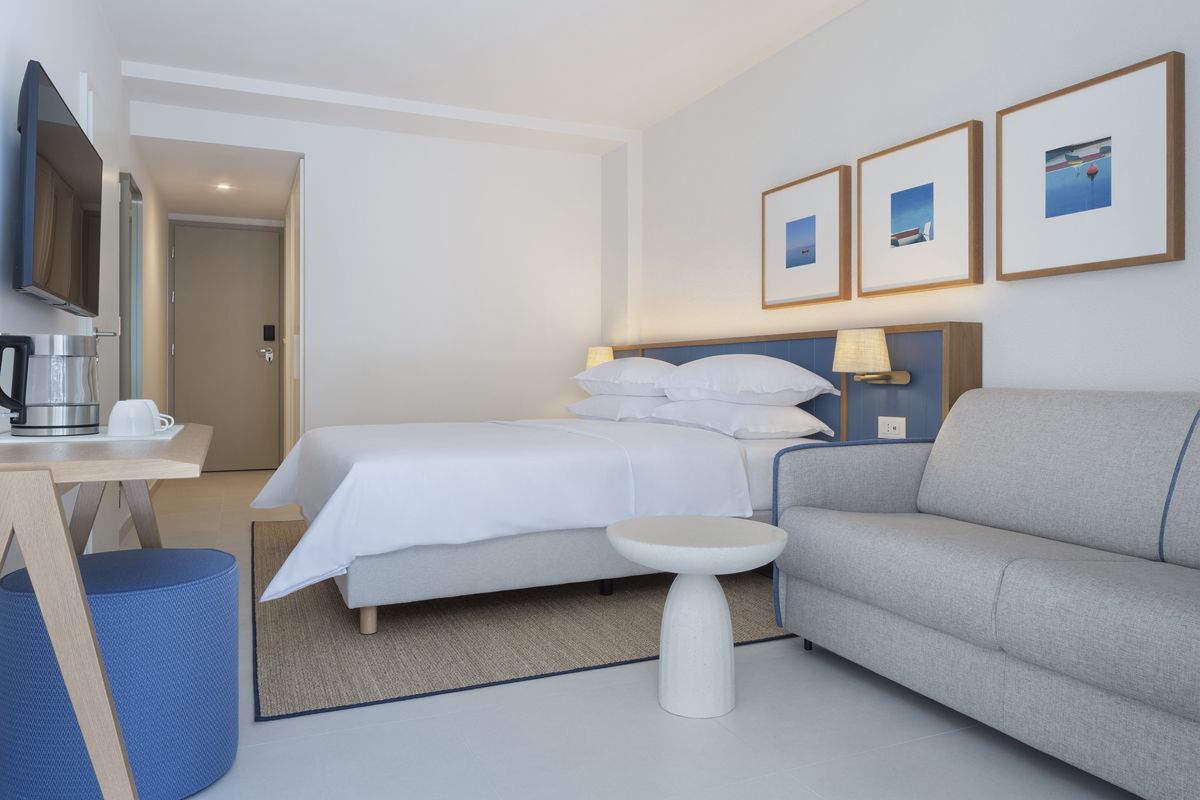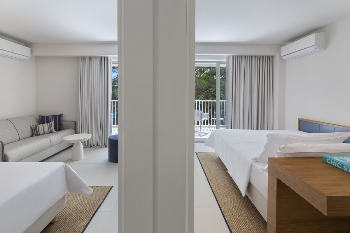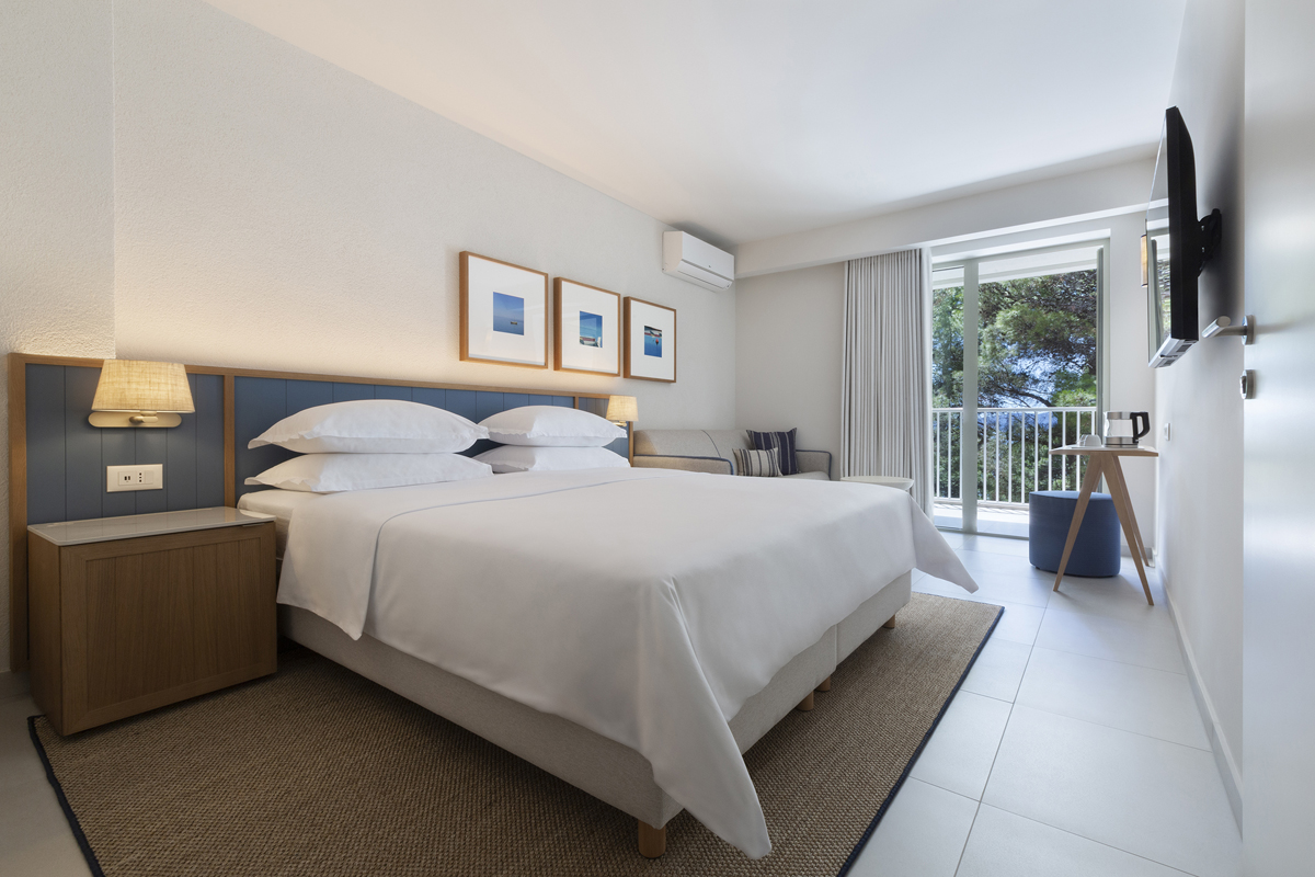 20 m² - izba s manželskou posteľou s možnosťou prístelky formou rozkladacej pohovky vhodnej pre jednu dospelú osobu a jedno dieťa do nedovŕšených 14 rokov alebo pre dve deti do nedovŕšených 14 rokov, sociálne zariadenie so sprchou, balkón orientovaný na more