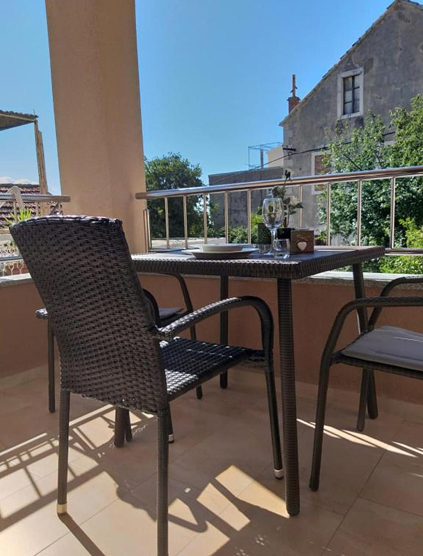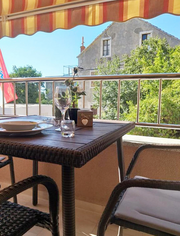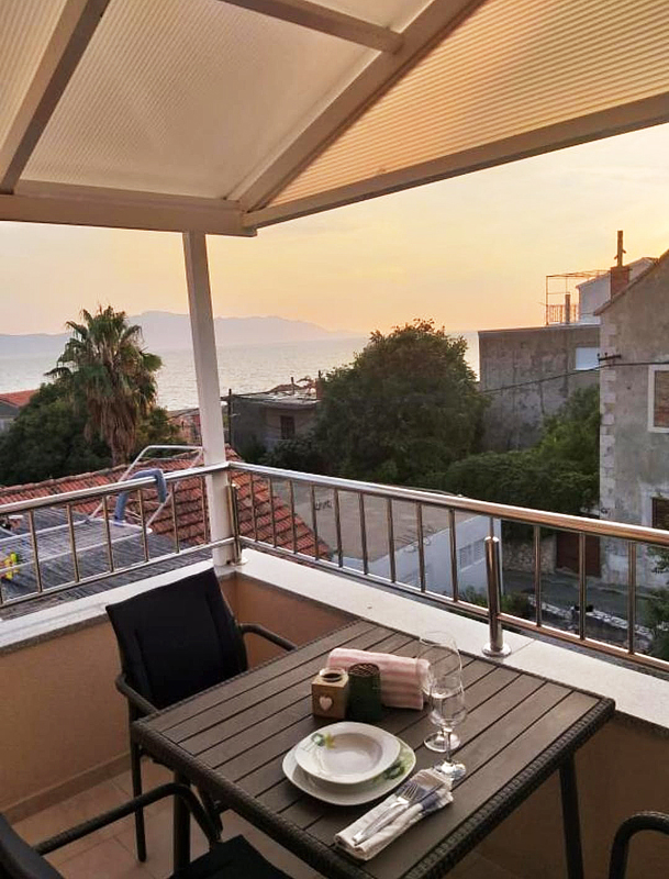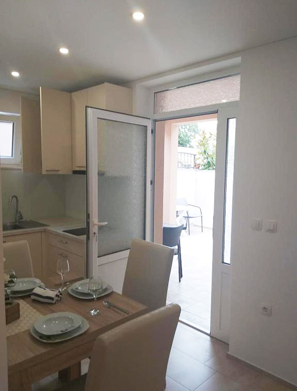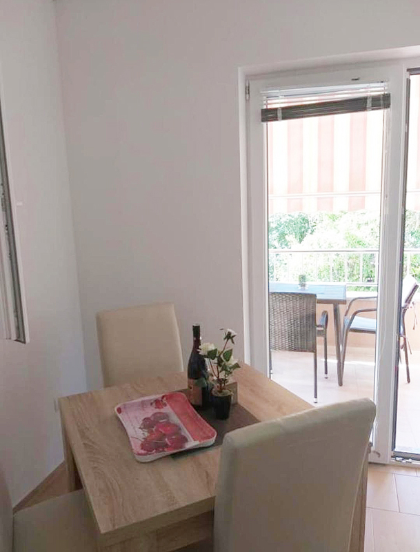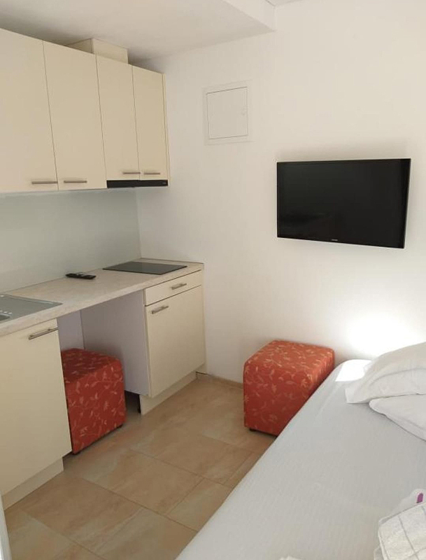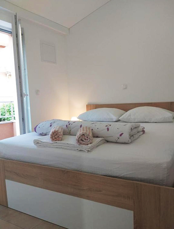 Bilo 3+1 balkon M - spálňa s manželskou posteľou, obývacia izba s vybaveným kuchynským kútom a prístelkou formou rozkladacieho gauča pre jednu dospelú osobu alebo dve deti do nedovŕšených 12 rokov, sociálne zariadenie so sprchou, dva balkóny – jeden orientovaný do ulice, druhý s výhľadom na more