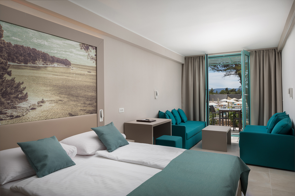 18 m² - izba s manželskou posteľou alebo 2 samostatnými lôžkami, rozkladacia pohovka pre dieťa do nedovŕšených 16 rokov, sociálne zariadenie so sprchou, balkón alebo terasa