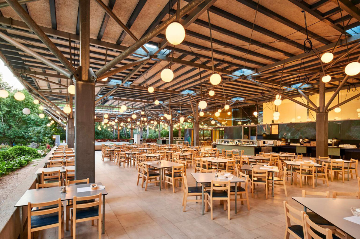 recepcia / zmenáreň, Wi-Fi zdarma, centrálna reštaurácia s terasou, plážový bar*, aperitív bar, spoločné sociálne zariadenia (8–9) s toaletami a sprchami, detský klub, detské ihrisko, amfiteáter pre animačné programy, obchod, lekárska služba, bar a reštaurácia; za poplatok: požičovňa bicyklov, masáže, transfery