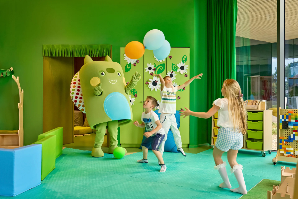 vonkajší bazén s hydromasážnymi prvkami, detský bazén, brodisko, pomalá rieka, ležadlá a slnečníky pri bazéne zdarma, vnútorný bazén, vnútorný detský bazén so šmykľavkami, detské ihrisko, stolný tenis*, volejbal*, vodné športy*, fitness*, relaxačná* a kozmetická* zóna; fínska, aróma a bio sauna, para, Kneippov chodník, dva ochladzovacie bazéniky, detská wellness zóna*