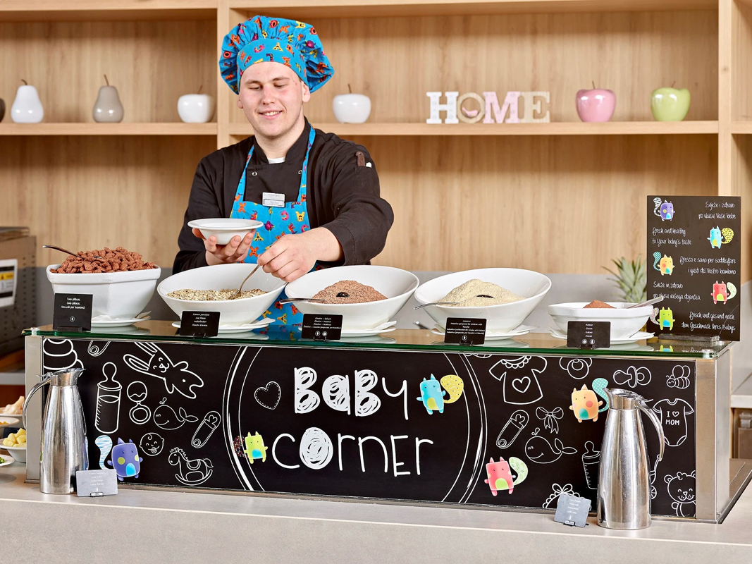 detská postieľka: zdarma (len na požiadanie v CK; možná len v izbe Standard 2+1 balkón M; max. 1 nad rámec plnej obsaditeľnosti izby; pre dieťa do nedovŕšených 2 rokov)