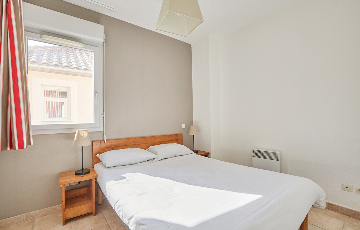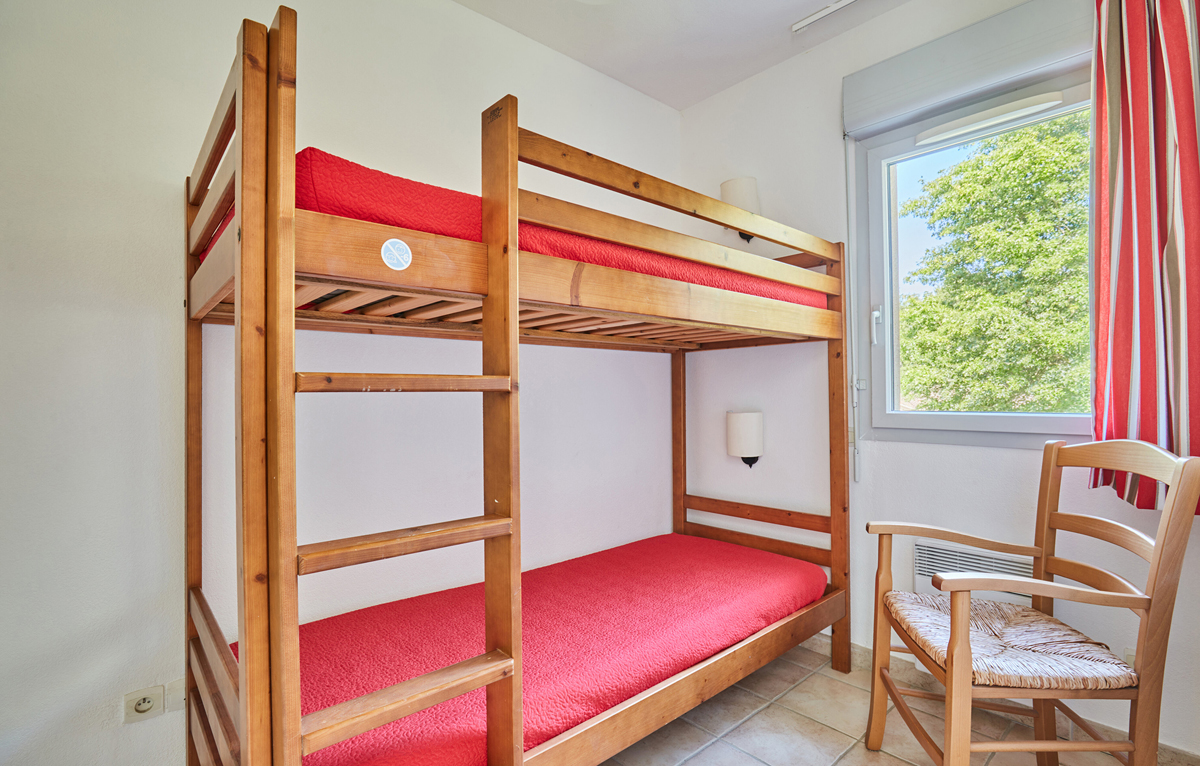 44 m² 1 spálňa s manželskou posteľou, 1 spálňa s 2 samostatnými lôžkami, kabína s poschodovou posteľou, obývacia izba s kuchynským kútom a rozkladacím gaučom (typ zásuvka), kúpeľňa, sprchový kút, oddelené WC; apartmány sú dvojpodlažné