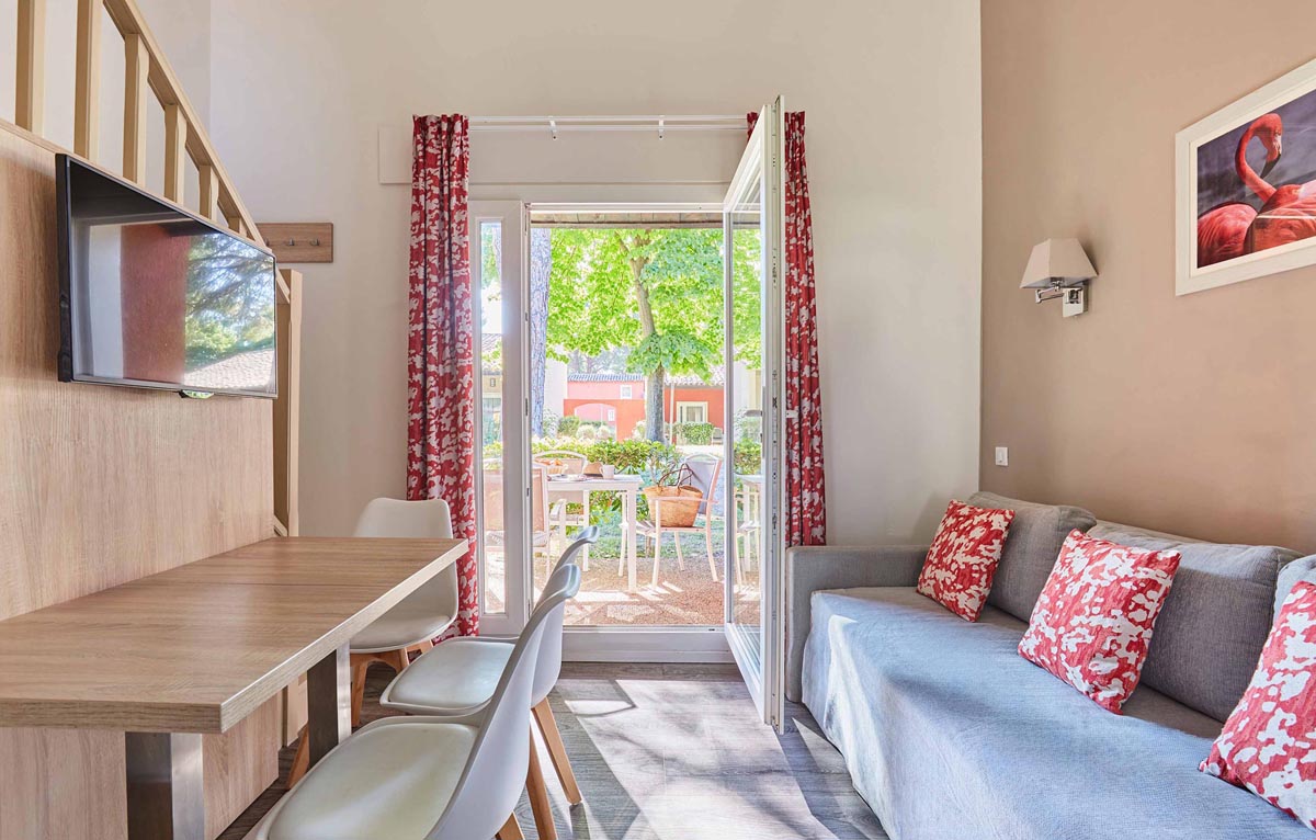 • súčasťou prázdninového komplexu Le Village Camarguais s 10 vonkajšími bazénmi, menším jazerom, viacúčelovými športoviskami, reštauráciami či seminárnymi miestnosťami