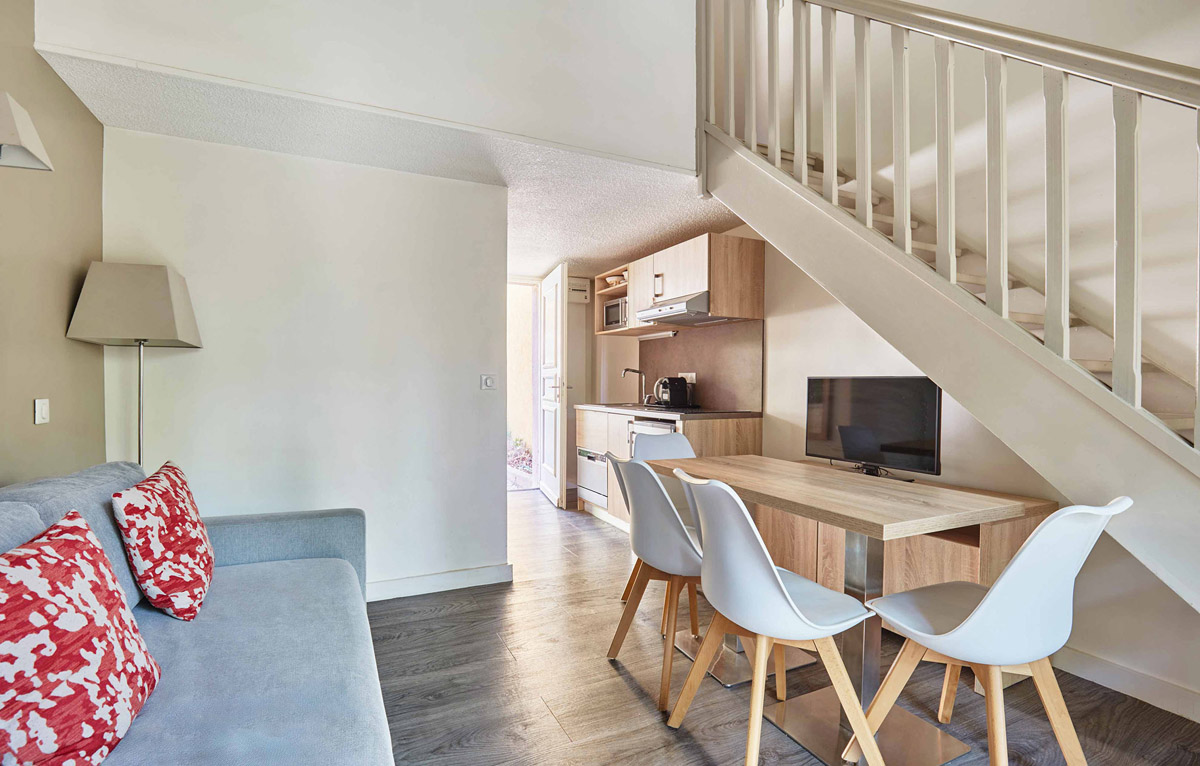 upresnenie - Residence pozostávajúca z menších provensálskych radových domčekov obklopených bohatou zeleňou v rámci prázdninového rezidenčného komplexu 35 ha Le Village Camarguais, klimatizované nadštandardné apartmány vždy s terasou.