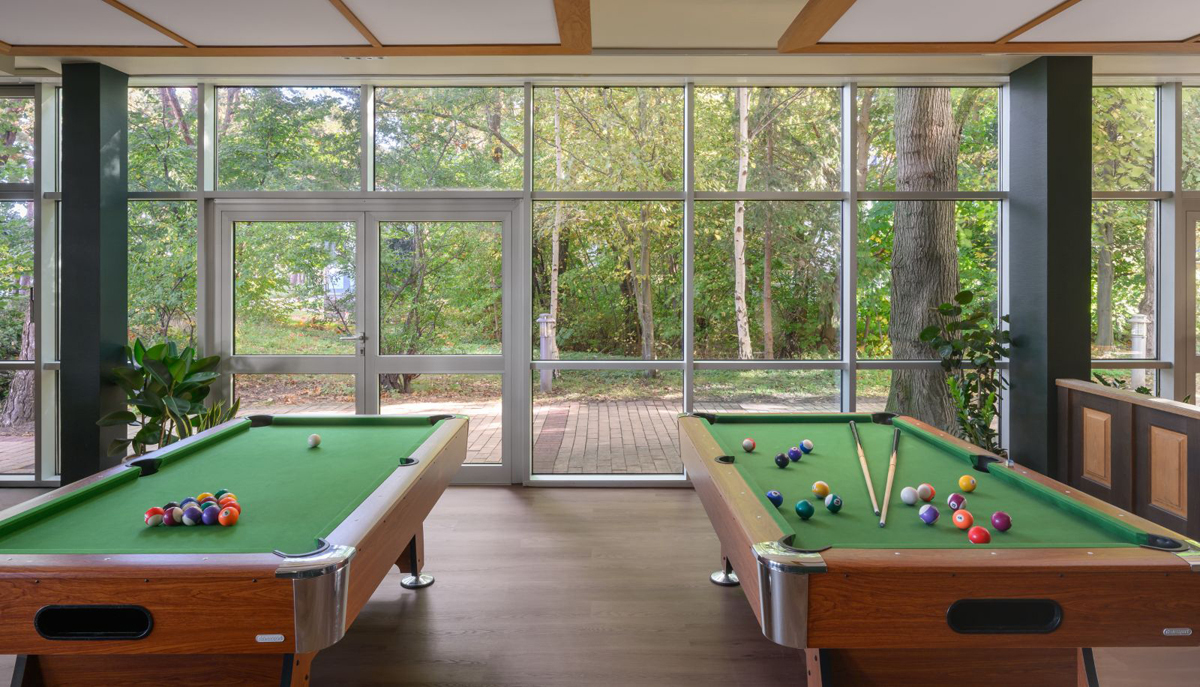 krytý bazén, vírivka, detský bazén, tobogan, fínska sauna, para, sanárium, relaxačný kútik s ležadlami, masáže* (na požiadanie), zážitkové sprchy, malá telocvičňa, požičovňa bicyklov*, biliard*, stolný tenis, minigolf*