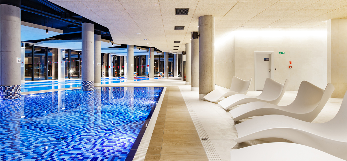 plavecký bazén (25 m), detský bazén, vírivka, parný kúpeľ, fínska sauna, infrasauna, tepidárium, relaxačná miestnosť, nadštandardne vybavené fitness centrum so strojmi na posilňovanie, spinning, lezecká stena pre deti aj dospelých (nutná vlastná športová obuv), masáže*, kozmetické služby a procedúry*