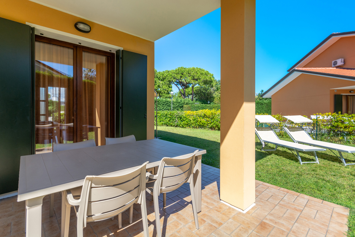 100 m² – polovica jednoposchodovej vily; prízemie: 1 spálňa s manželskou posteľou, obývacia izba s kuchynským kútom, sociálne zariadenie so sprchou, veranda s vonkajším krbom a grilom, záhrada; poschodie: 1 spálňa s manželskou posteľou, 1 spálňa s 2 samostatnými lôžkami alebo poschodovou posteľou, sociálne zariadenie so sprchou; 2 parkovacie miesta pri dome; na požiadanie možnosť 7. osoby na prístelke*