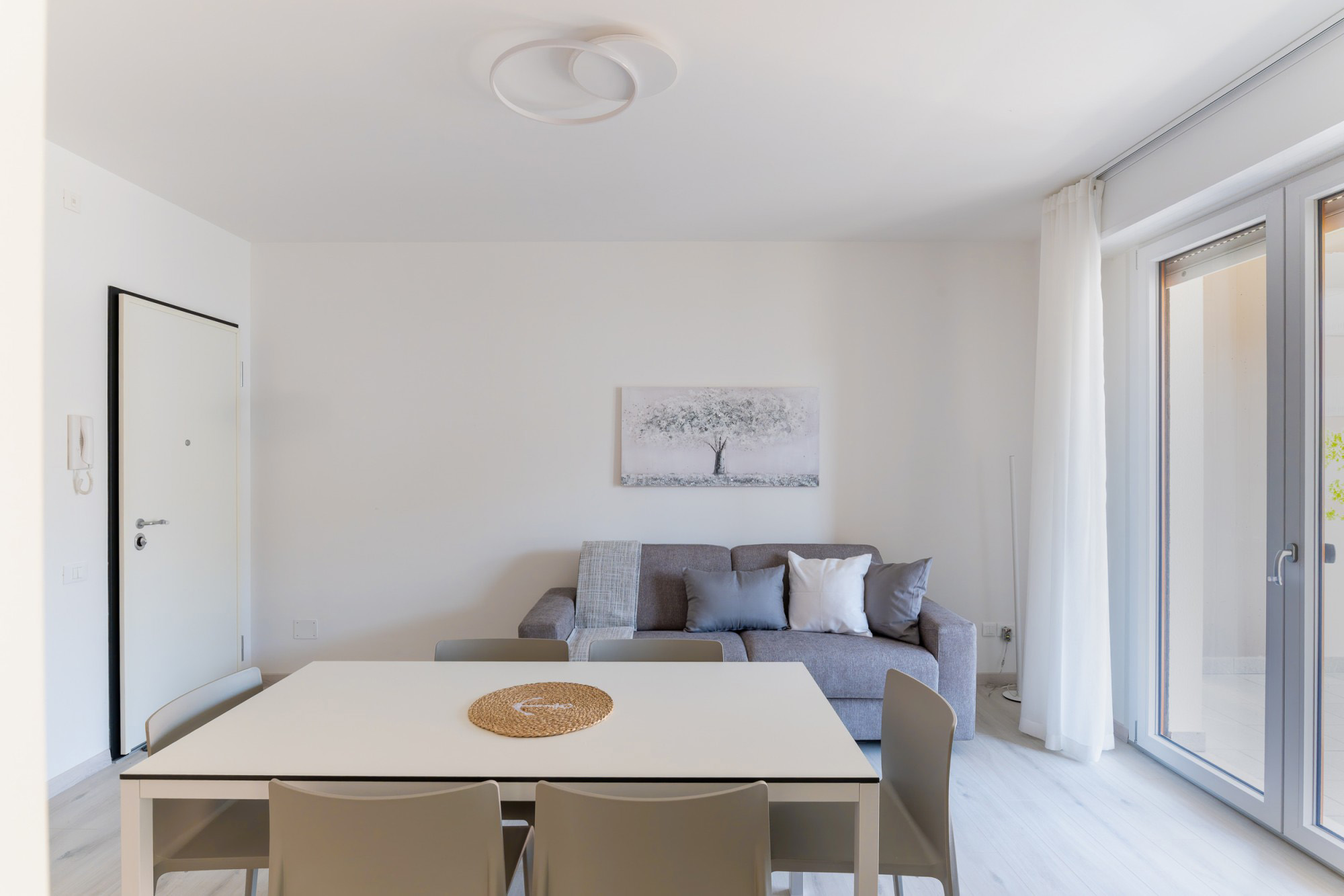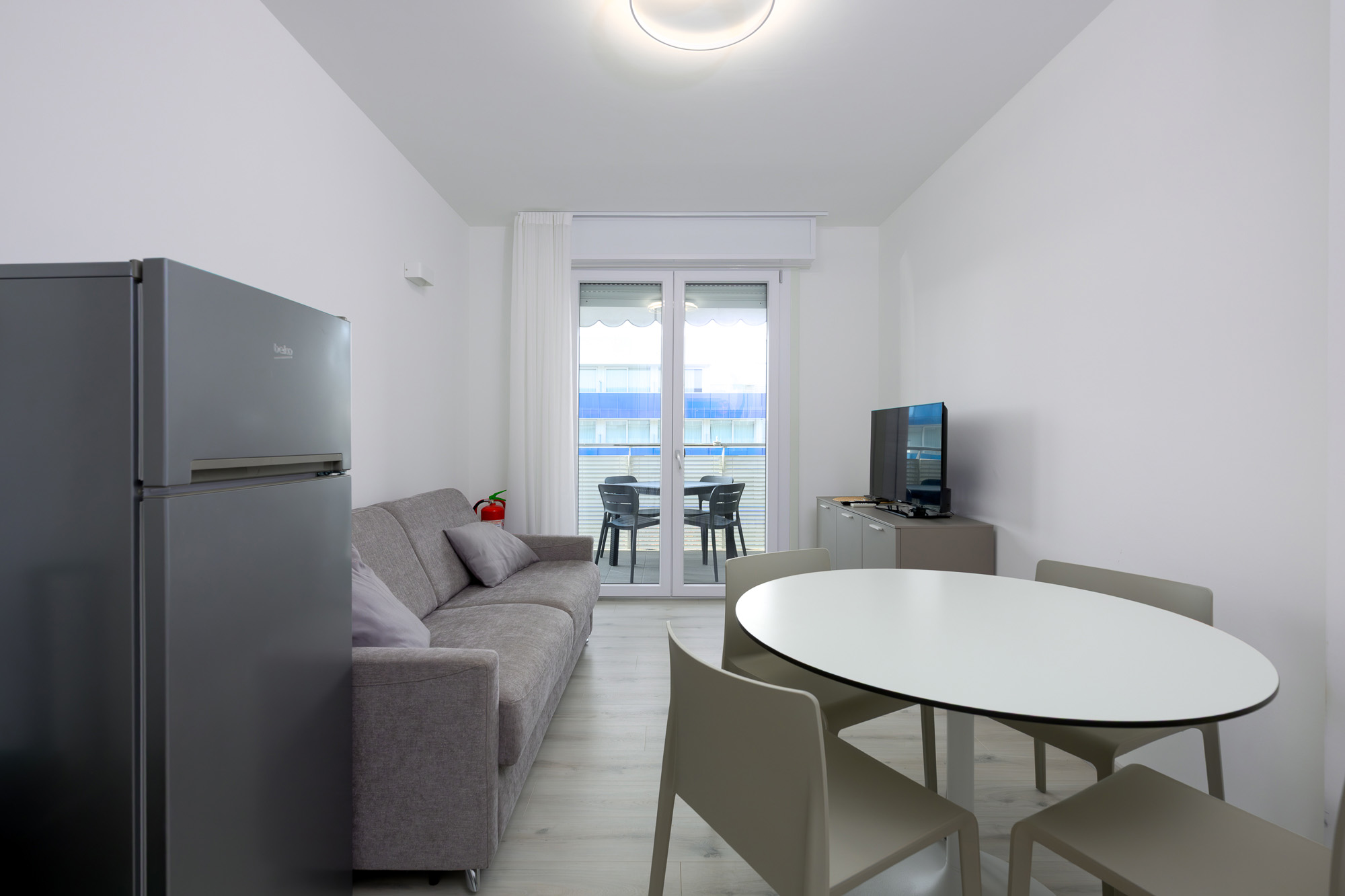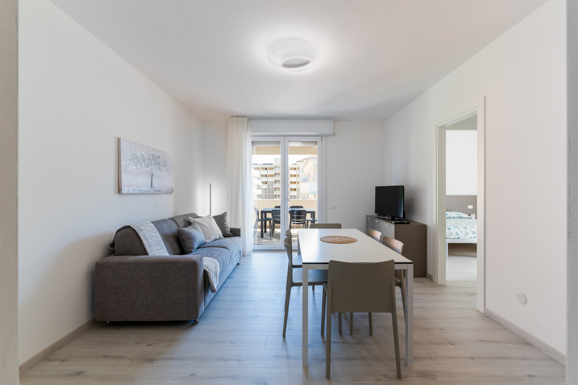 dva prepojené šesťpodlažné apartmánové domy v pokojnej časti Lido dei Pini