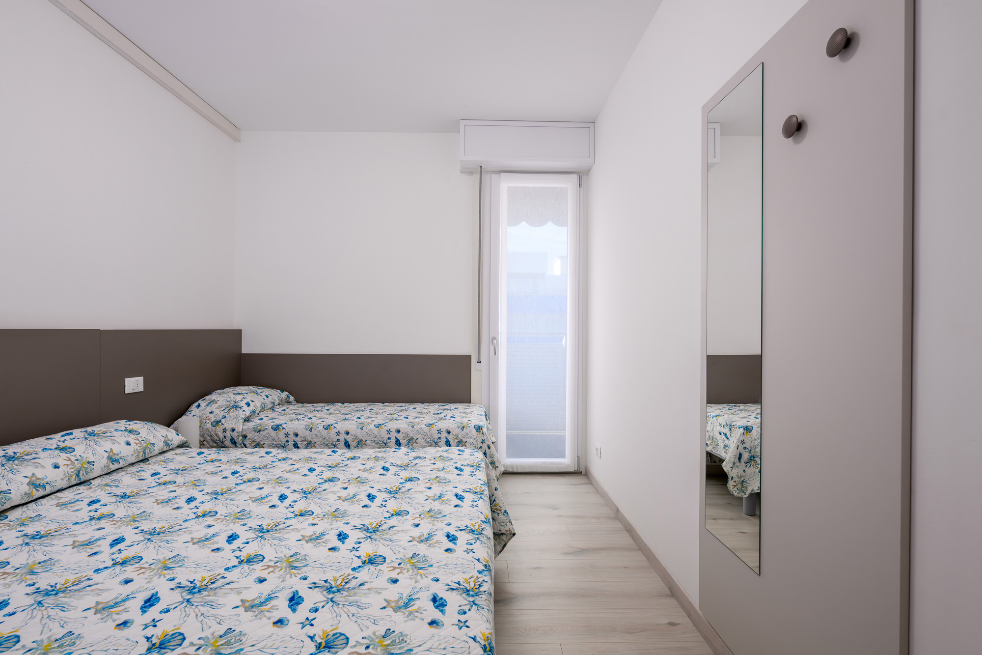 trilo 6/7 / trilo 6+ - 45 až 50 m² - 1 spálňa s manželskou posteľou, 1 spálňa s 2 samostatnými lôžkami alebo 1 samostatným lôžkom a poschodovou posteľou, obývacia izba s kuchynským kútom a rozkladacím gaučom (možný typ "zásuvka") pre 2 osoby, sociálne zariadenie so sprchou, balkón a terasa; trilo 6+ zrekonštruované