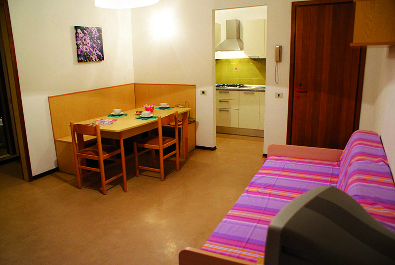 bilo 4/5 / bilo 5+ - 35 m² - 1 spálňa s manželskou posteľou a prípadne 1 samostatným lôžkom, obývacia izba s kuchynským kútom a rozkladacím gaučom pre 2 osoby, sociálne zariadenie so sprchou, balkón; bilo 5+ zrekonštruované