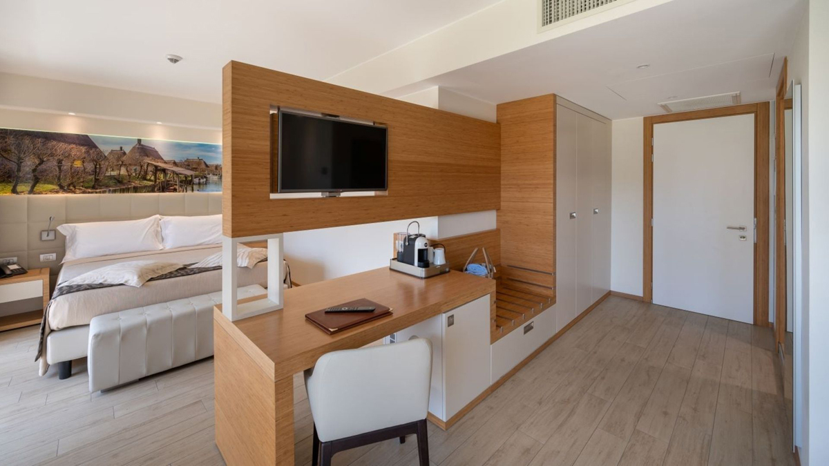 Luminosa 2/3 - 20 m² – izba s manželskou posteľou alebo 2 samostatnými lôžkami, sociálne zariadenie so sprchou, balkón s bočným výhľadom na more; 3. lôžko formou prístelky