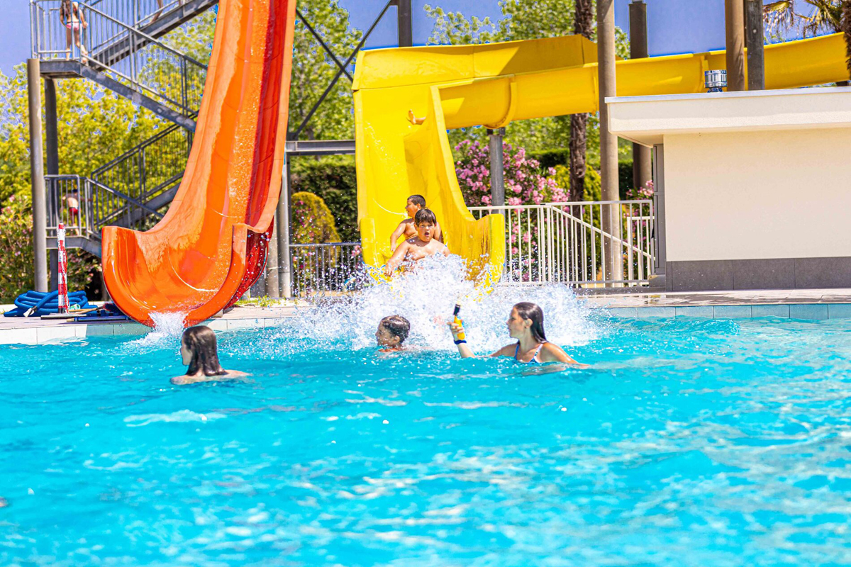 4 vonkajšie bazény so šmykľavkami a vírivkou (v nízkej sezóne 1 vyhrievaný), vodný park Spray Park s fontánami a vodnými hrami, fitness centrum, ležadlá a slnečníky (na požiadanie)*, tenisové kurty, kurt na padel*, basketbalové, futbalové a volejbalové ihrisko, petanque, minigolf, stolný tenis, lekcie jogy*, aerobiku*, pilates*, požičovňa bicyklov*, vodných bicyklov*, člnov*, kajakov* aj windsurfov*, od júna do začiatku septembra plavecká škola* pre deti od 3 do 12 rokov, detský kútik, detské ihrisko aj na pláži