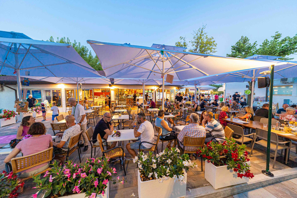 recepcia, bar a reštaurácia, 2 pizzerie, snack bar, jogurtéria a zmrzlináreň, detský kútik, detský klub a animačné programy (cca od konca mája do začiatku septembra), vyhradené parkovisko, práčovňa*, umývačka áut*, minimarket, obchod s ovocím, zeleninou, suvenírmi, tabákom, divadlo, herne, diskotéka, lekárska pohotovosť (v hlavnej sezóne), kaderníctvo*, bankomat, wi-fi pripojenie na internet*, miestny motorový vláčik