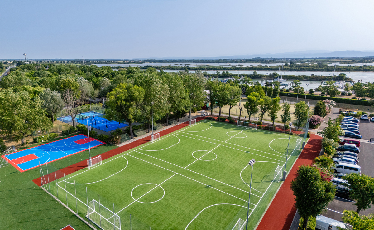 šport a relaxácia - bazén pre dospelých s vírivkou a detský bazén (približne od konca mája do polovice septembra), tenisové kurty, futbalové ihrisko, ihrisko na volejbal, basketbal, padel, skate park, plážový volejbal, požičovňa bicyklov* a elektrobicyklov*, plážový servis*, vodné športy, vodný skákací park; golfové ihrisko* (18 jamiek), prístav pre jachty s požičovňou motorových člnov*