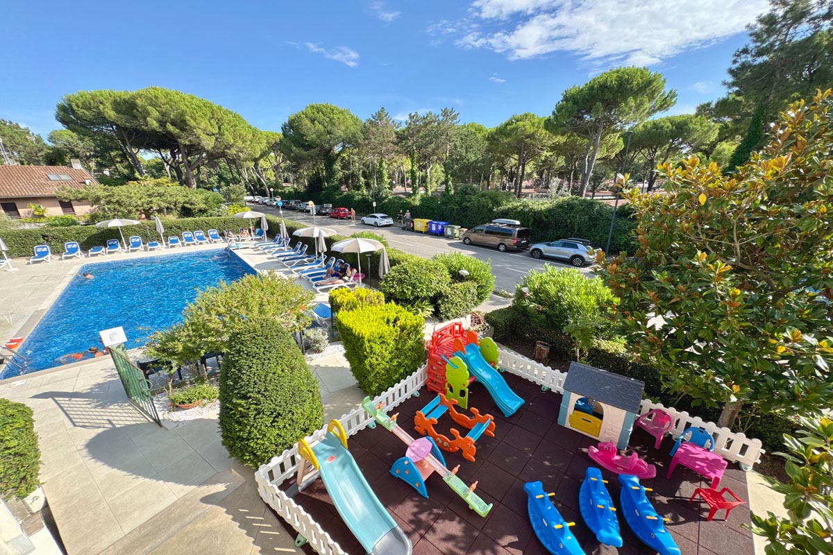 recepcia / lobby, reštaurácia, bar, televízna miestnosť, výťah, detské ihrisko, strešná terasa s ležadlami, slnečníky, sprcha, vonkajšia terasa s posedením, vyhradené parkovisko (počet miest obmedzený), wi-fi pripojenie na internet, väčšina spoločných priestorov hotela je klimatizovaná
