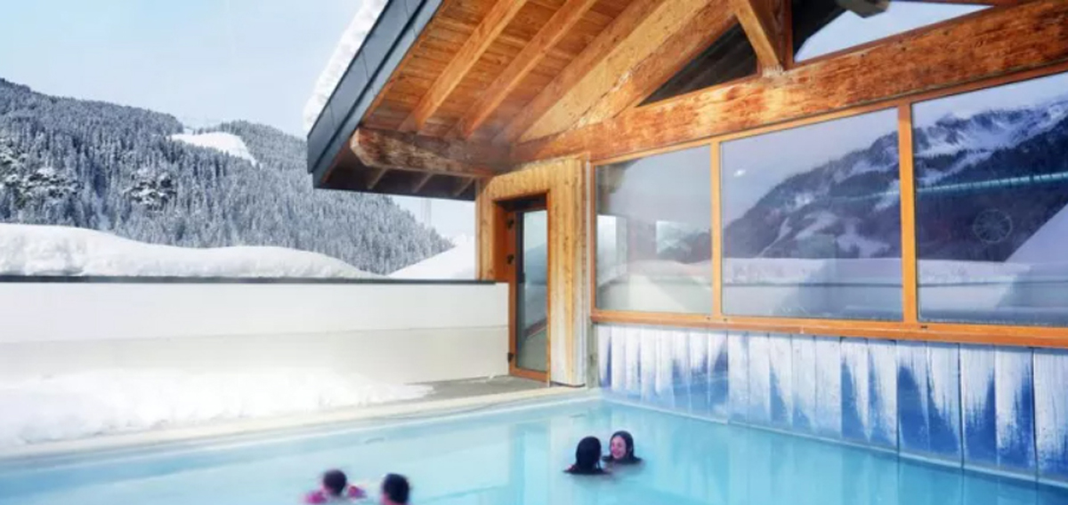 vyhrievaný bazén (polovica vnútorný, polovica vonkajší), vírivka, fínska sauna