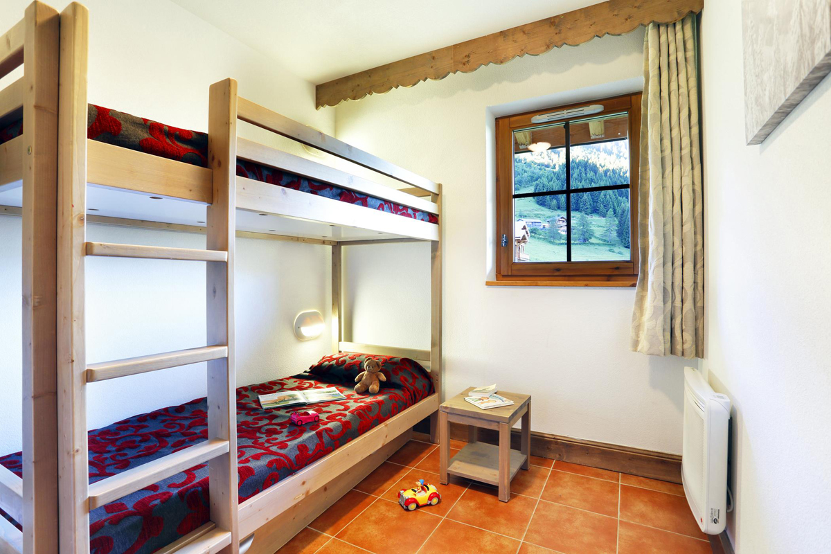 57 m² - 1 spálňa s manželskou posteľou, 1 spálňa s 2 samostatnými lôžkami alebo poschodovou posteľou, obývacia izba s kuchynským kútom a rozkladacím gaučom pre 2 osoby (možný aj typ „zásuvka“), sociálne zariadenie so sprchou alebo vaňou, balkón