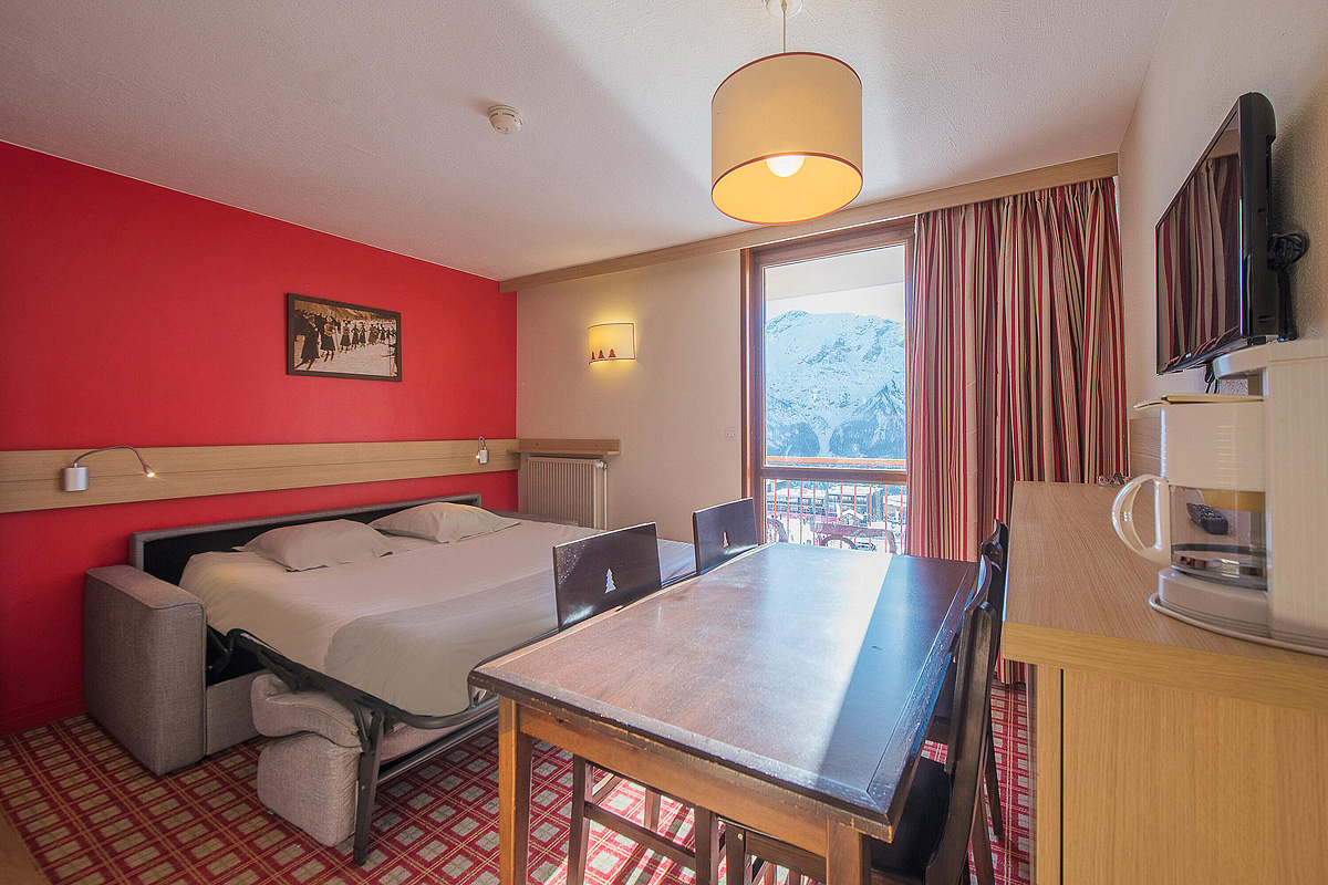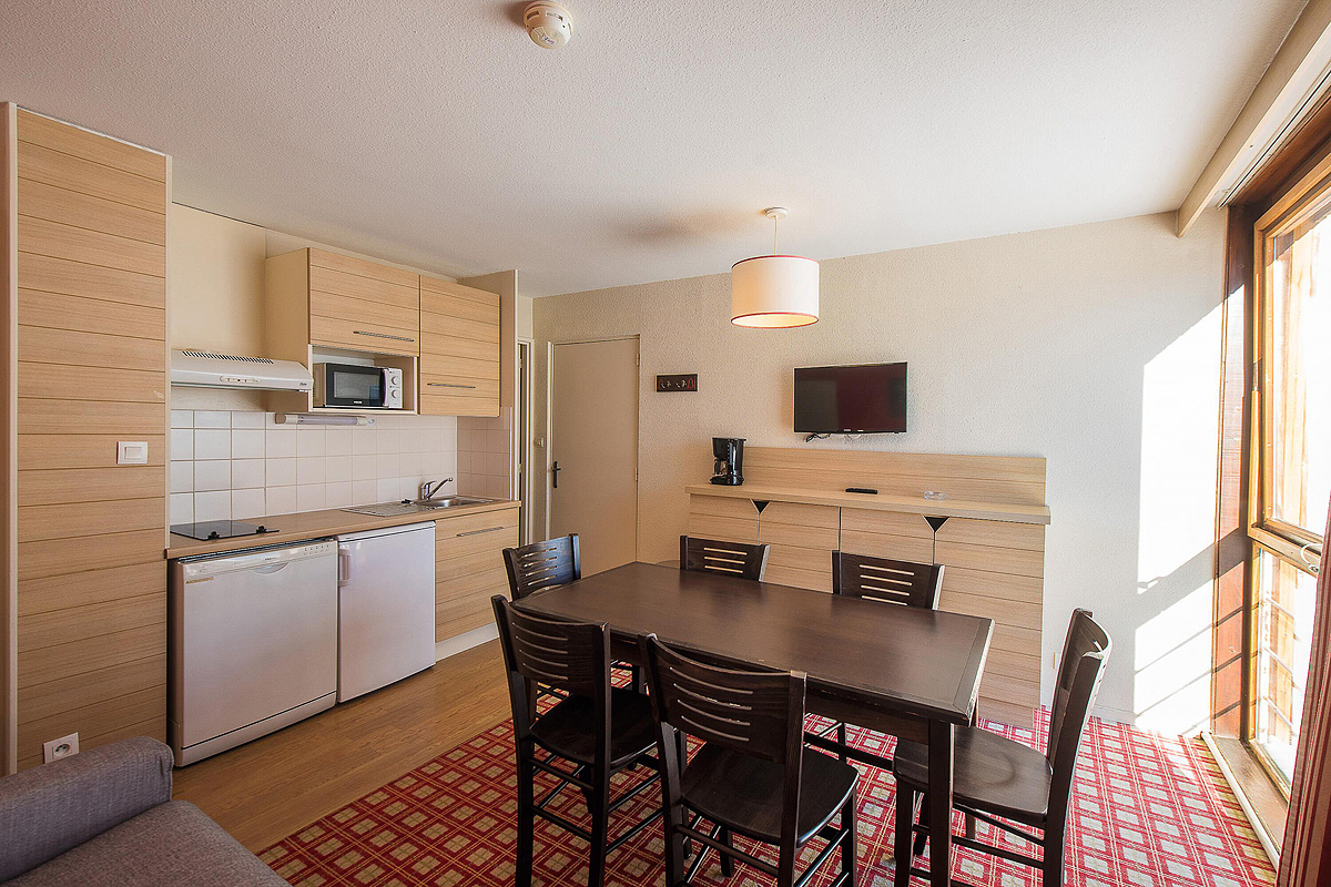 30 m² 1 spálňa s poschodovou posteľou, obývacia izba s kuchynským kútom a rozkladacím gaučom pre 2 osoby (možný i typ „zásuvka“), sociálne zariadenie, balkón s výhľadom na hory