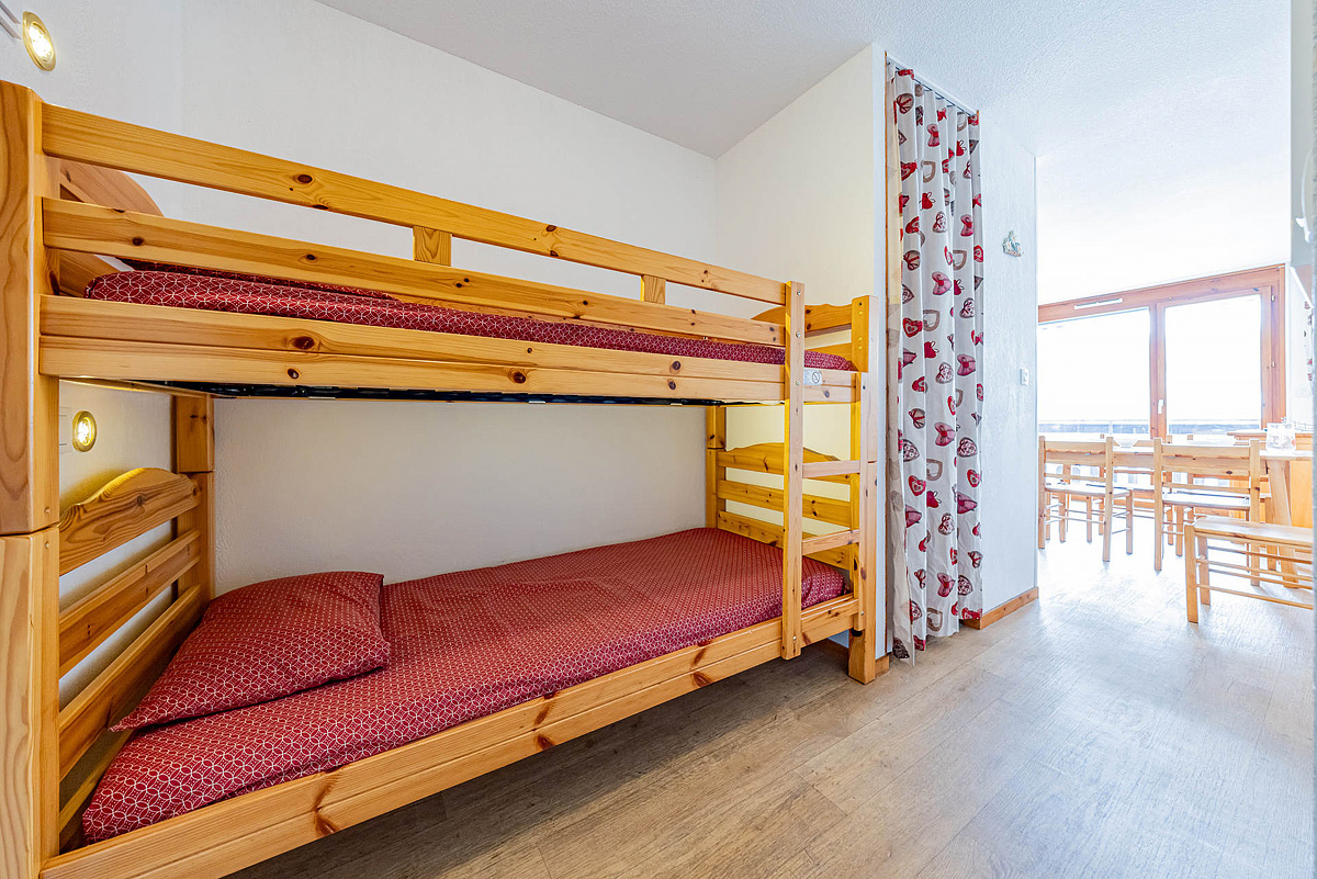 30 m² - 1 spálňa s manželskou posteľou alebo 2 samostatnými lôžkami, obývacia izba s kuchynským kútom a rozkladacím gaučom pre 2 osoby (možný aj typ "zásuvka"), vstupná miestnosť s poschodovou posteľou, sociálne zariadenie so sprchou alebo vaňou, spravidla balkón