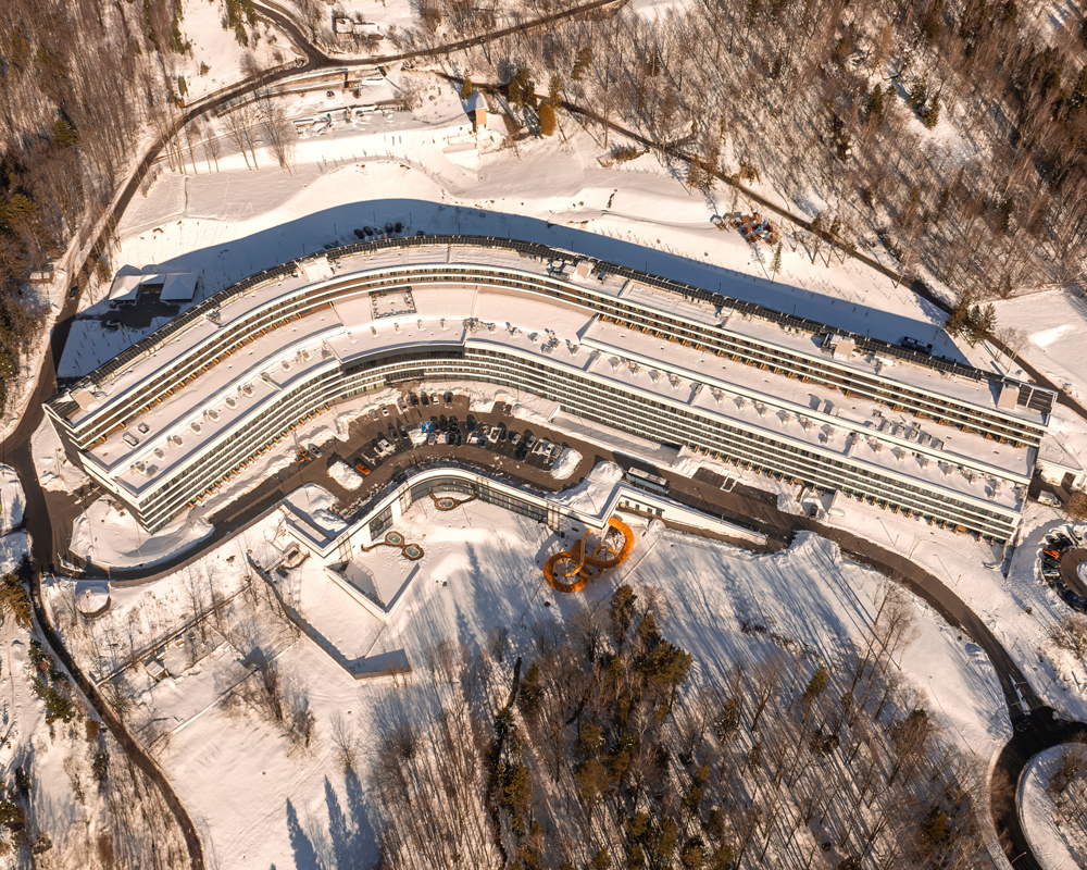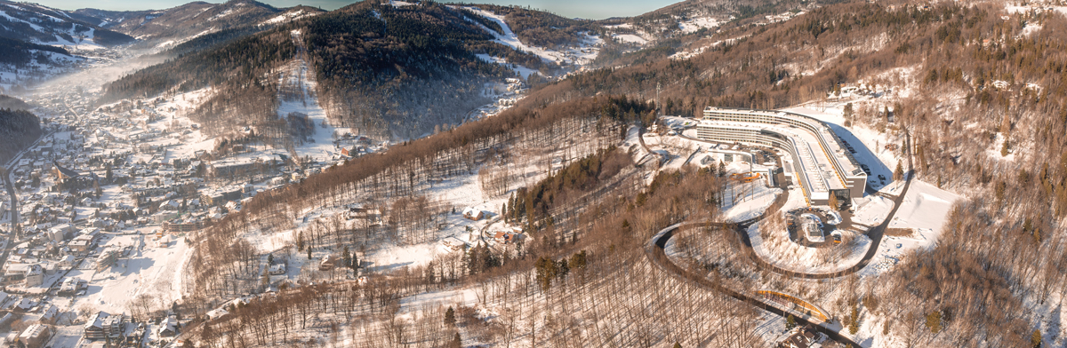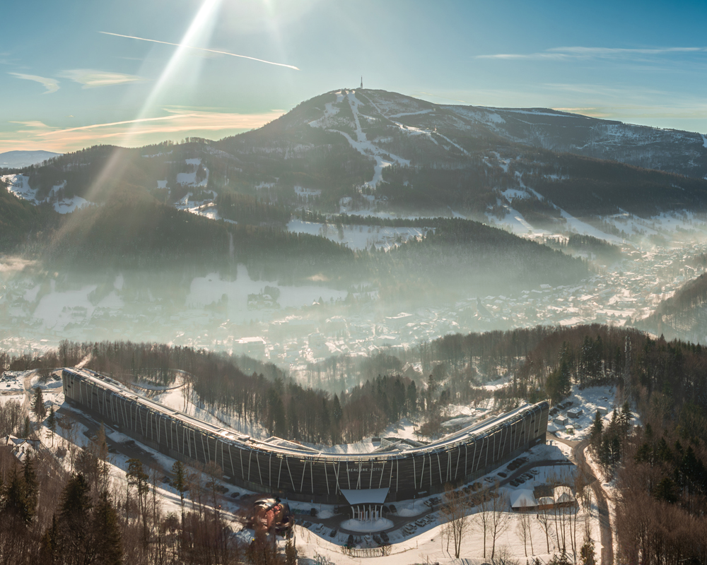 nový a ekologicky navrhnutý hotelový komplex v poľských Beskýdoch s panoramatickým výhľadom na horský masív