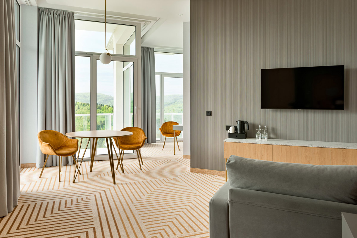 úplne moderný päťhviezdičkový hotel na svahu Góra Bukowa v stredisku Wisła tvorí trojkrídlová budova, súčasťou komplexu je aj hotelový aquapark so všetkými atrakciami