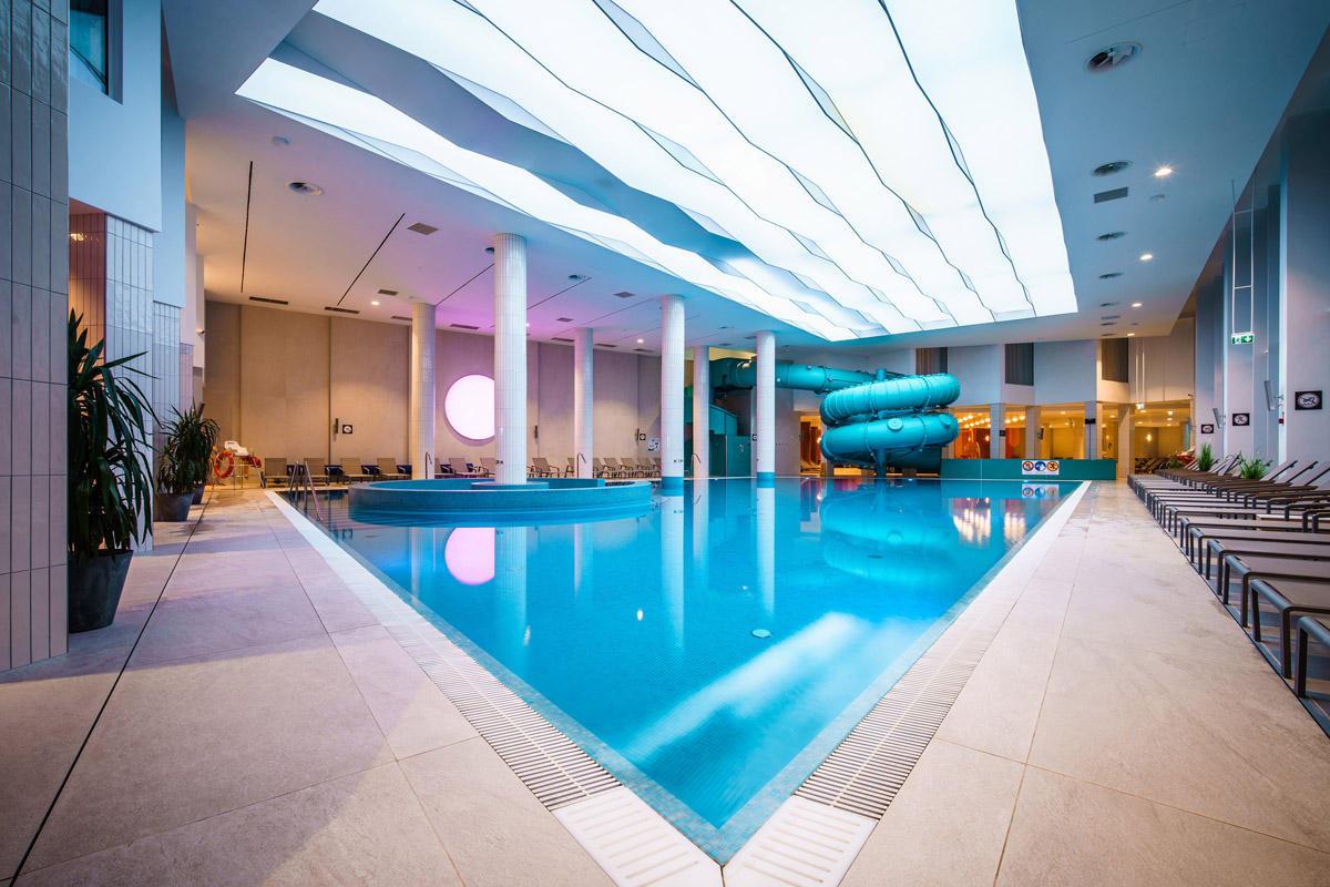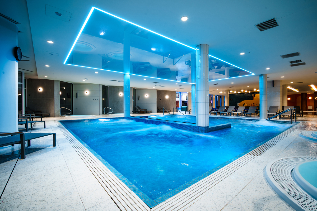 Blue Lagoon Aquapark tvorí Black Pool (bazén pre hostí od 16 rokov), rekreačný bazén, športový bazén s plaveckými dráhami, detská zóna so šmykľavkami a atrakciami (ponorka), detské brodisko, jacuzzi, relaxačné a odpočinkové miestnosti, vonkajší vyhrievaný bazén „Infinity“, 3 vonkajšie vírivky