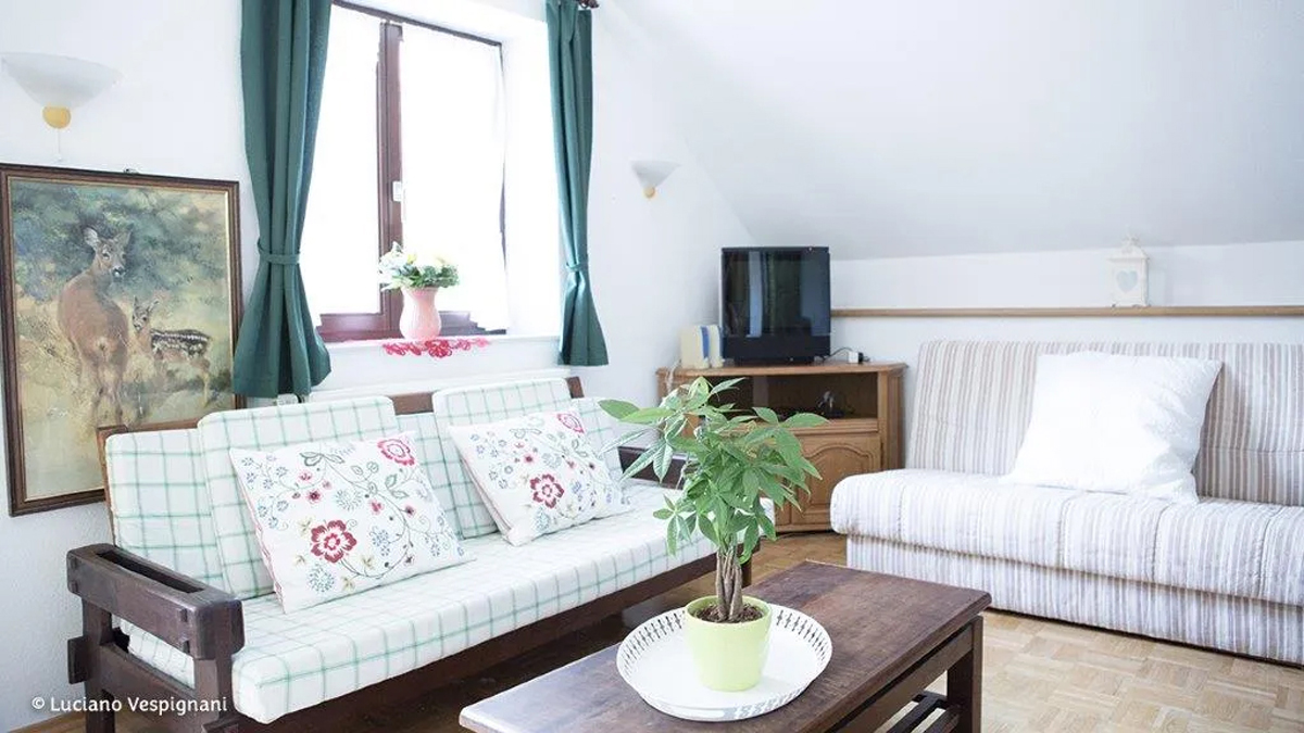 160 m² - 1. podlažie chaletu: obývacia izba s kuchynským kútom a rozkladacím gaučom pre 2 osoby, sociálne zariadenie, úschovňa lyží a lyžiarskych topánok; 2. podlažie chaletu: 2 spálne s manželskou posteľou, 2x sociálne zariadenie (vždy prístupné zo spálne), predsieň; 3. podlažie chaletu: 1 spálňa s 2 samostatnými lôžkami, sociálne zariadenie, obývacia izba s kuchynským kútom a rozkladacím gaučom pre 2 osoby, balkón; 3. podlažie chaletu má vlastný vchod