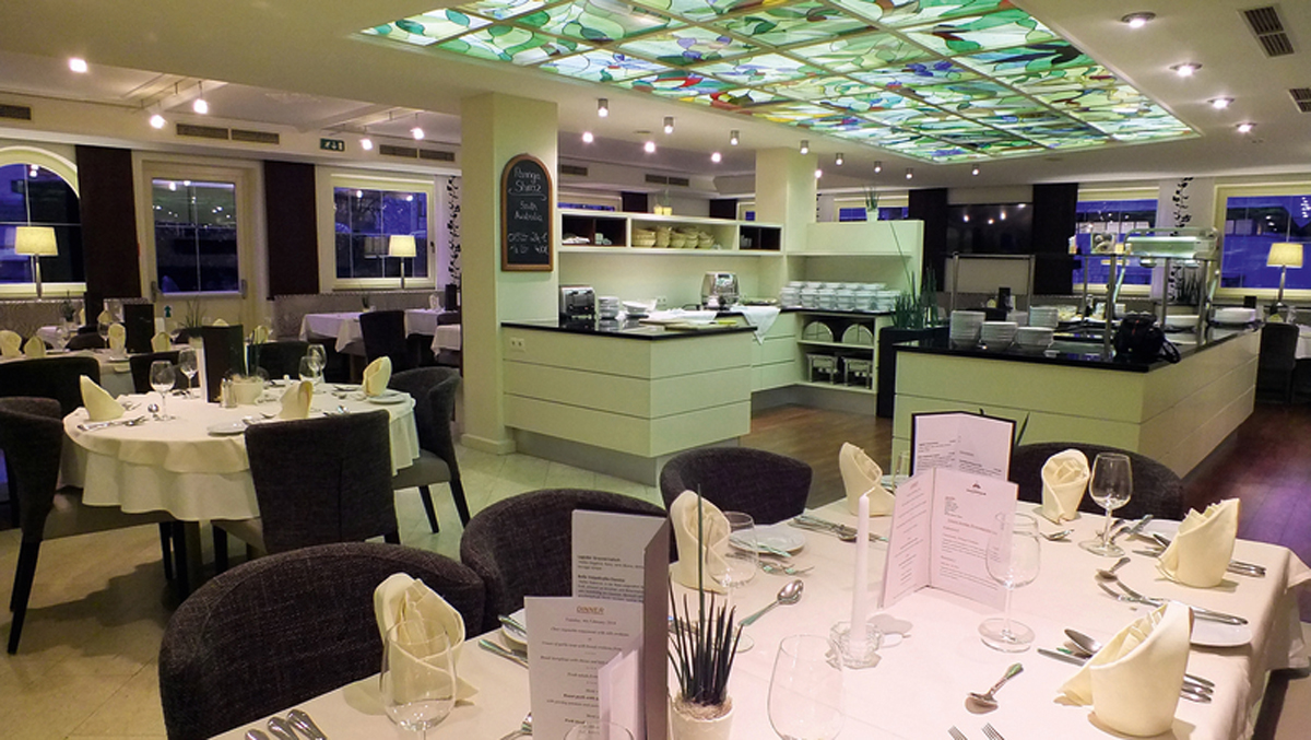 servírované 4chodové menu s výberom z 3 hlavných jedál s prílohou, servírované predjedlo či polievka, šalátový bufet, servírovaný dezert, nápoje za poplatok