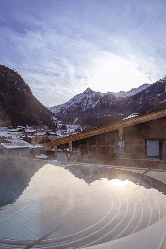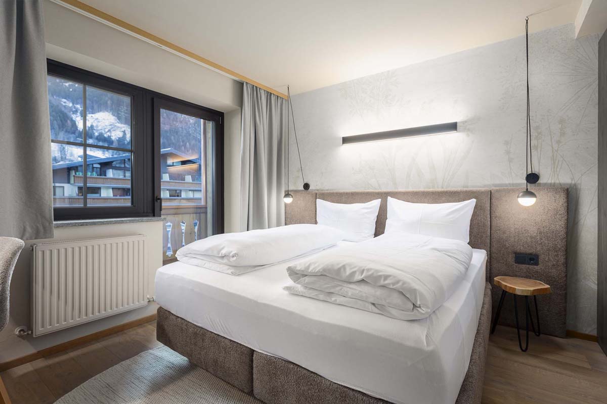 bazén na streche hotela „Infinity pool“#, fínska sauna#, bio sauna#, infrakabína#, 2 × relaxačný kútik#, terasa s výhľadom na Kitzsteinhorn#, posilňovňa#; služby označené # môžu využívať aj klienti ubytovaní v apartmánoch; vstup povolený od 18 rokov