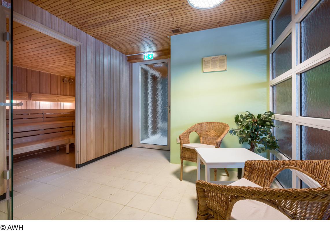 bazén 40 m², fínska sauna, para, Kneippov chodník, infrakabína*, relaxačný kútik s ležadlami, masáže*