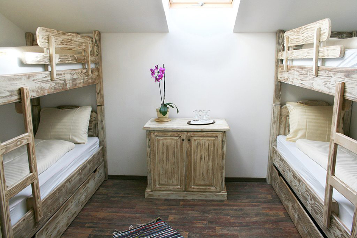 16 až 25 m² - izba s 3 poschodovými posteľami až pre 6 osôb, sociálne zariadenie so sprchou či vaňou, spravidla balkón či terasa