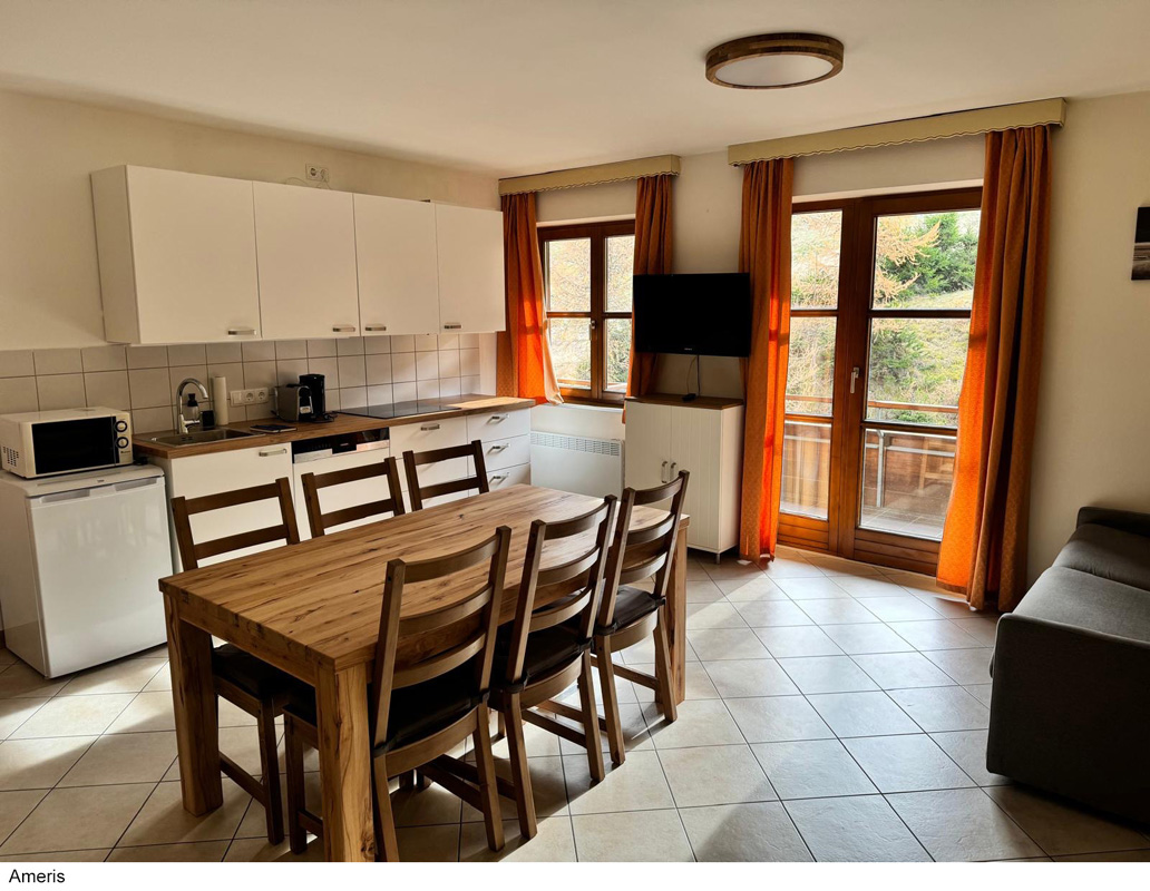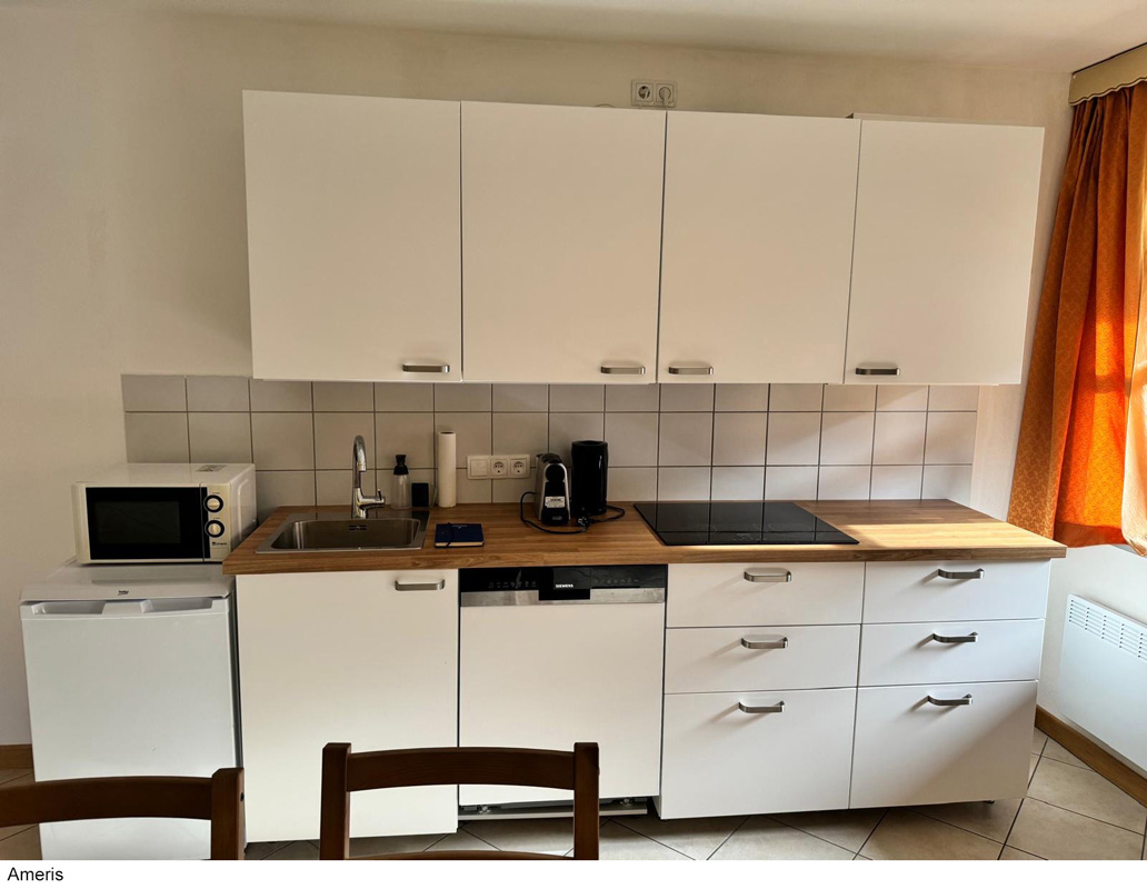 TV sat., trúba (len apt. Iris a Eveline), umývačka riadu (len apt. Ameris, Regina a Gerlinde), mikrovlnka (okrem apt. Regina), kávovar Nespresso (len apt. Edith a Gerlinde), kávovar, rýchlovarná kanvica