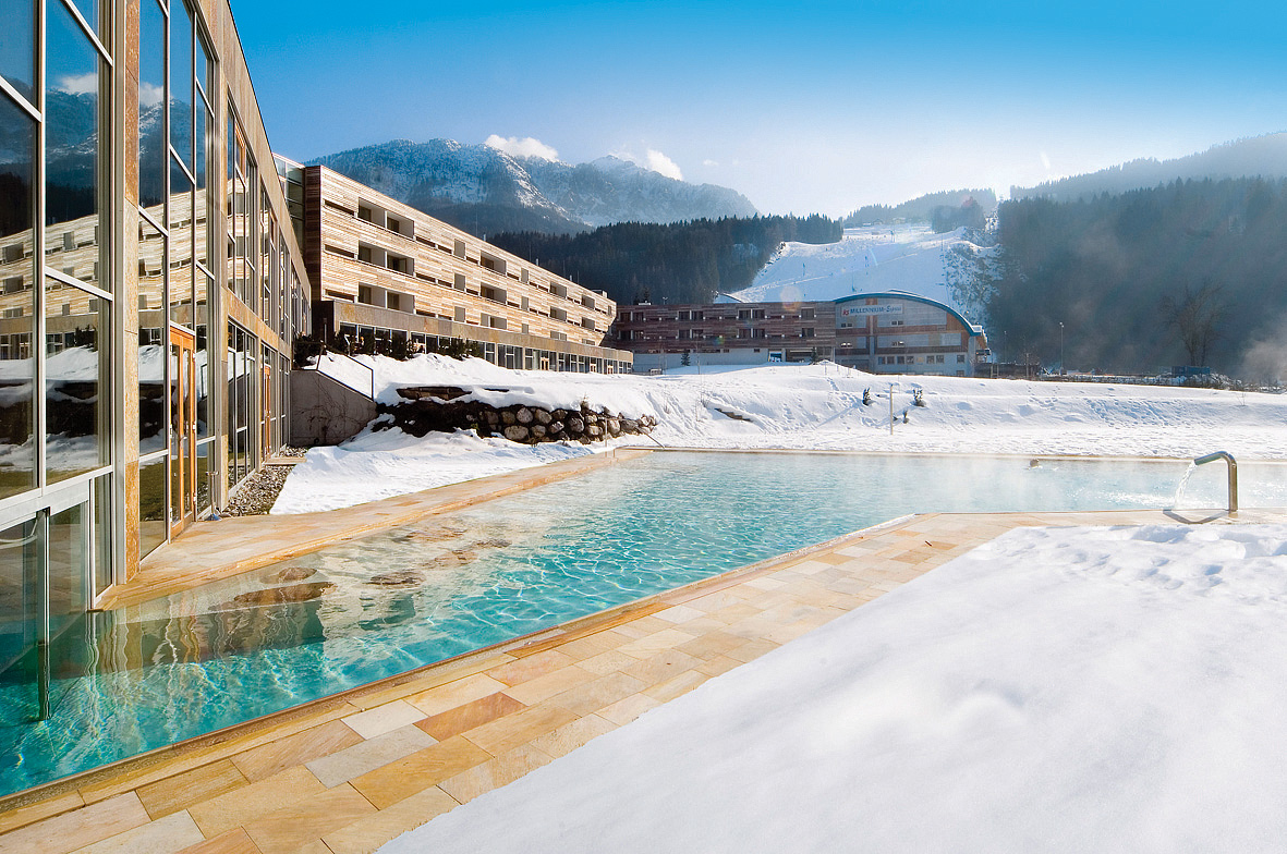 kúpele Acquapura s veľkosťou 2.400 m² - 76 m² bazén s masážnymi tryskami a protiprúdom, 249 m² vonkajší vyhrievaný bazén s ľadovou vodou, detský bazénik 15 m², vírivky, sauny (niekoľko druhov vrátane saunových rituálov), para, termárium, infrakabína, multifunkčná sprcha, horizontálne solárium*, relaxačná miestnosť s lehátkami a vodnými lôžkami, súkromné ​​relaxačné suity*, Kneippov chodník, masáže*, kozmetické služby*, zdravotné kúry*, denné cvičebné programy (yoga, aqua, fitness atd.), nadštandardne vybavená posilňovňa 100 m²