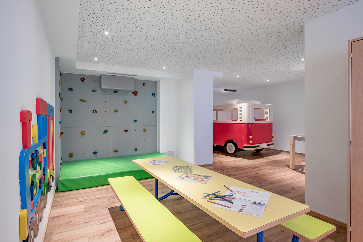 bazén 10 × 6 m, vonkajší vyhrievaný bazén 9 × 5 m, fínska sauna#, bio sauna#, para#, horizontálne solárium*#, soľný kúpeľ#, relaxačný kútik s ležadlami, masáže*#, kozmetické služby*#, posilňovňa; služby označené # sú prístupné deťom až od 16 rokov