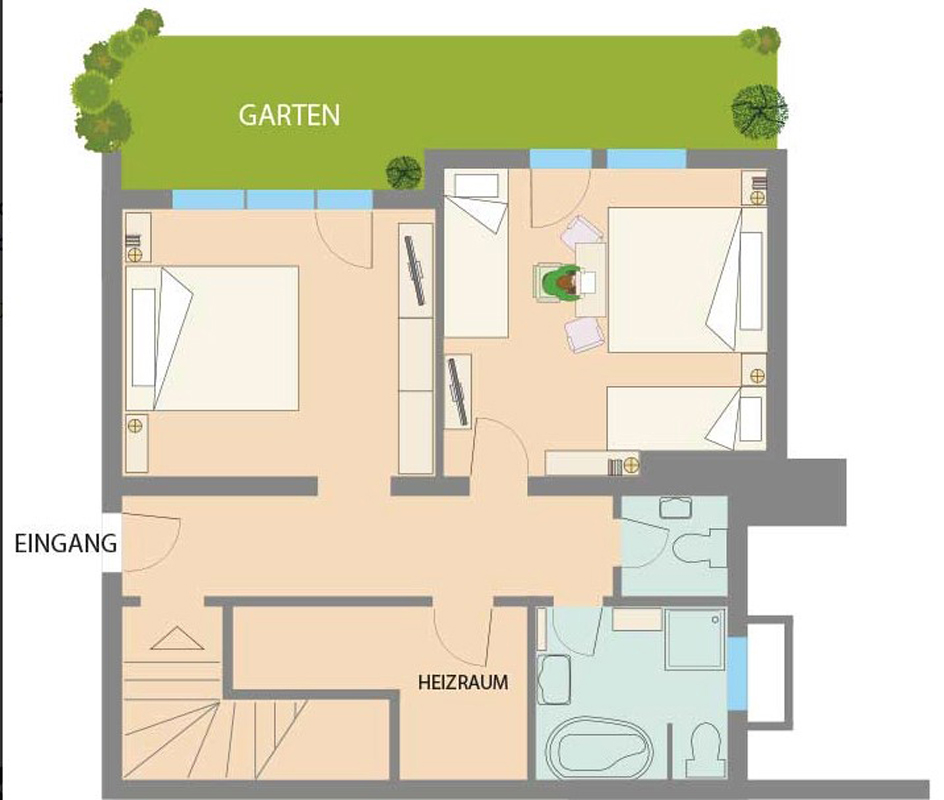 140 m² - 1. poschodie domu: spálňa s manželskou posteľou, obývacia izba s rozkladacím gaučom pre 2 osoby, samostatná kuchyňa, sociálne zariadenie s vaňou, terasa; 2. poschodie domu: 1 spálňa s manželskou posteľou, spálňa s manželskou posteľou a 2 samostatnými lôžkami, sociálne zariadenie, oddelené WC, balkón