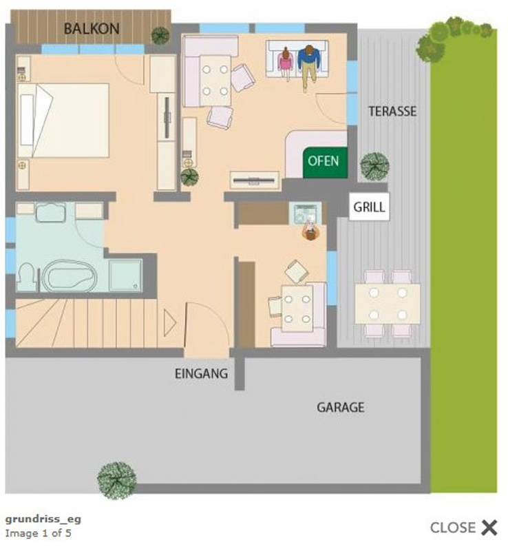 140 m² - 1. poschodie domu: spálňa s manželskou posteľou, obývacia izba s rozkladacím gaučom pre 2 osoby, samostatná kuchyňa, sociálne zariadenie s vaňou, terasa; 2. poschodie domu: 1 spálňa s manželskou posteľou, spálňa s manželskou posteľou a 2 samostatnými lôžkami, sociálne zariadenie, oddelené WC, balkón