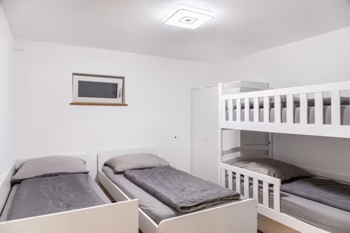 105 m² - spálňa s manželskou posteľou a poschodovou posteľou, spálňa s manželskou posteľou, obývacia izba s rozkladacím gaučom pre 2 osoby, samostatná kuchyňa, predsieň s malou detskou herňou, 2× sociálne zariadenie