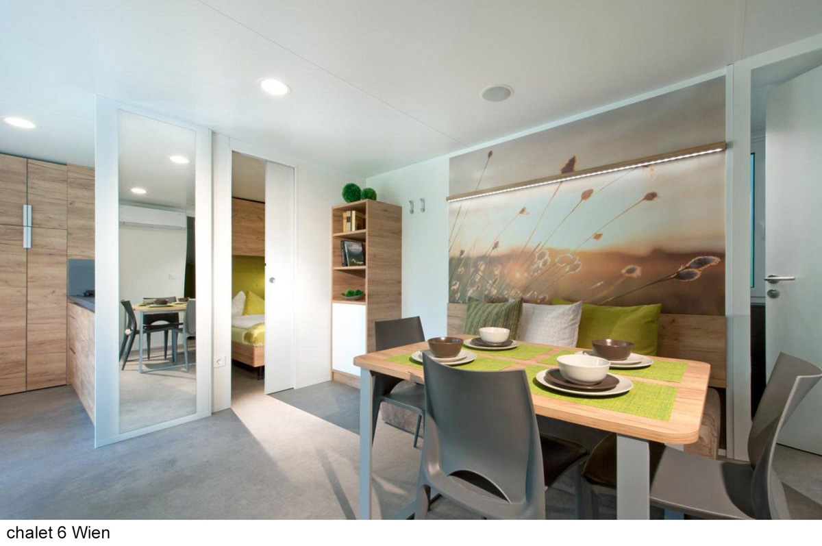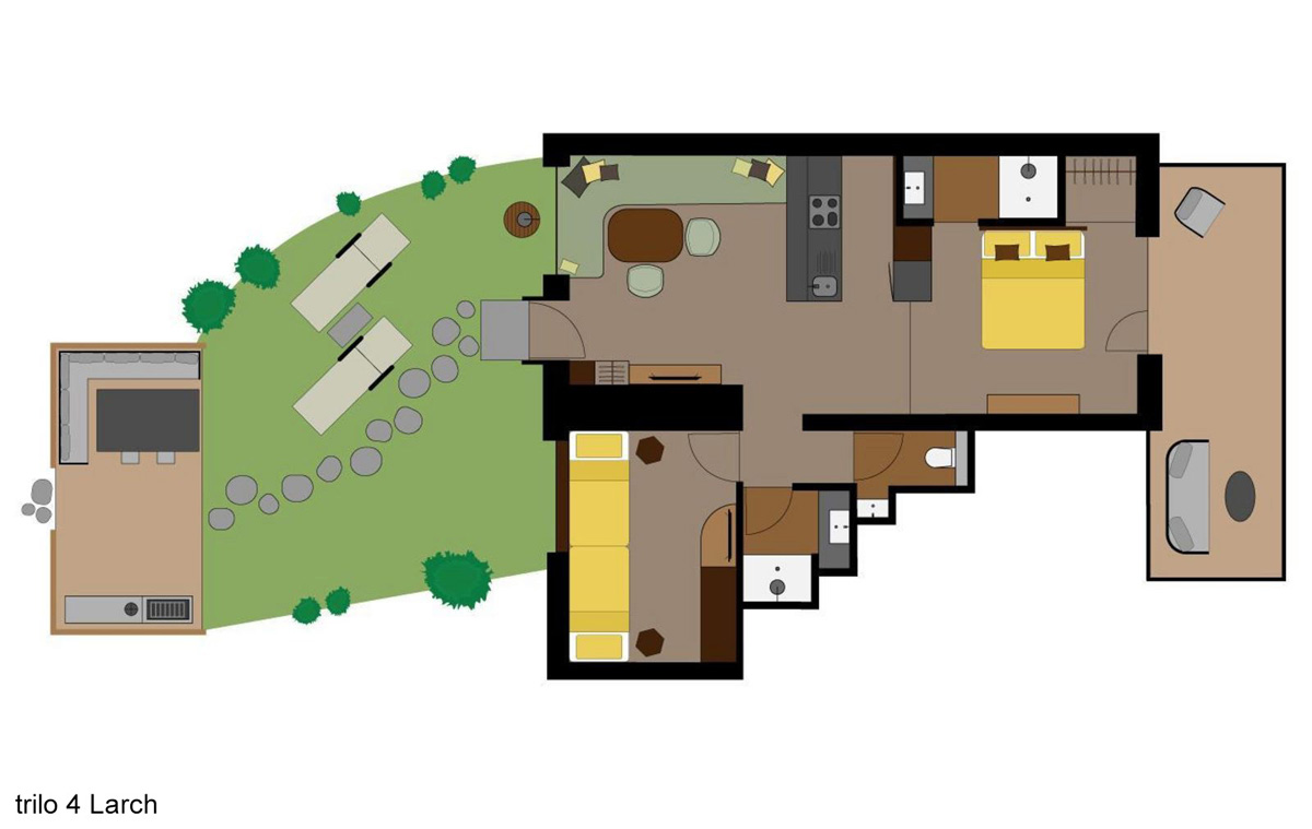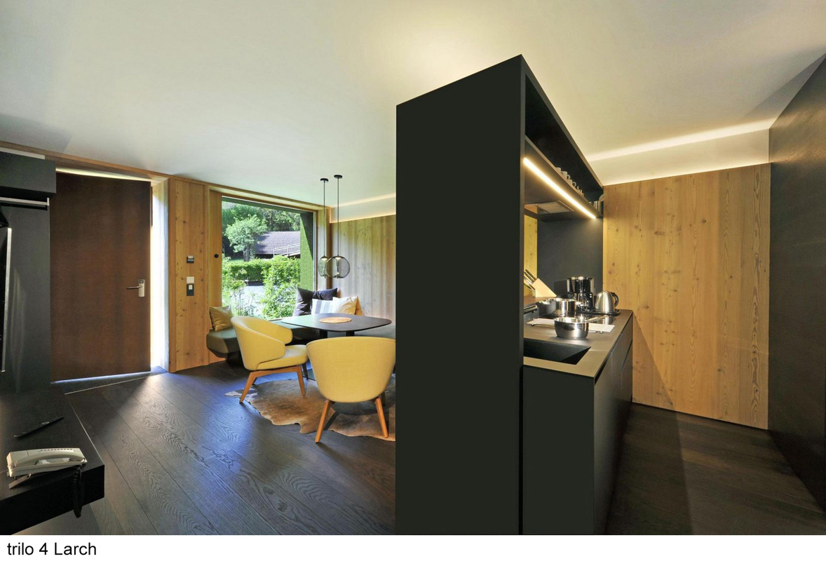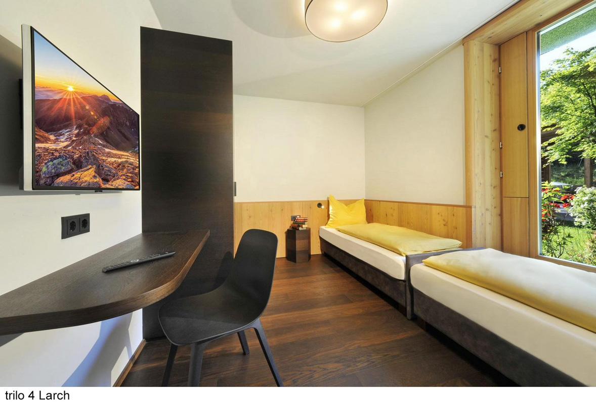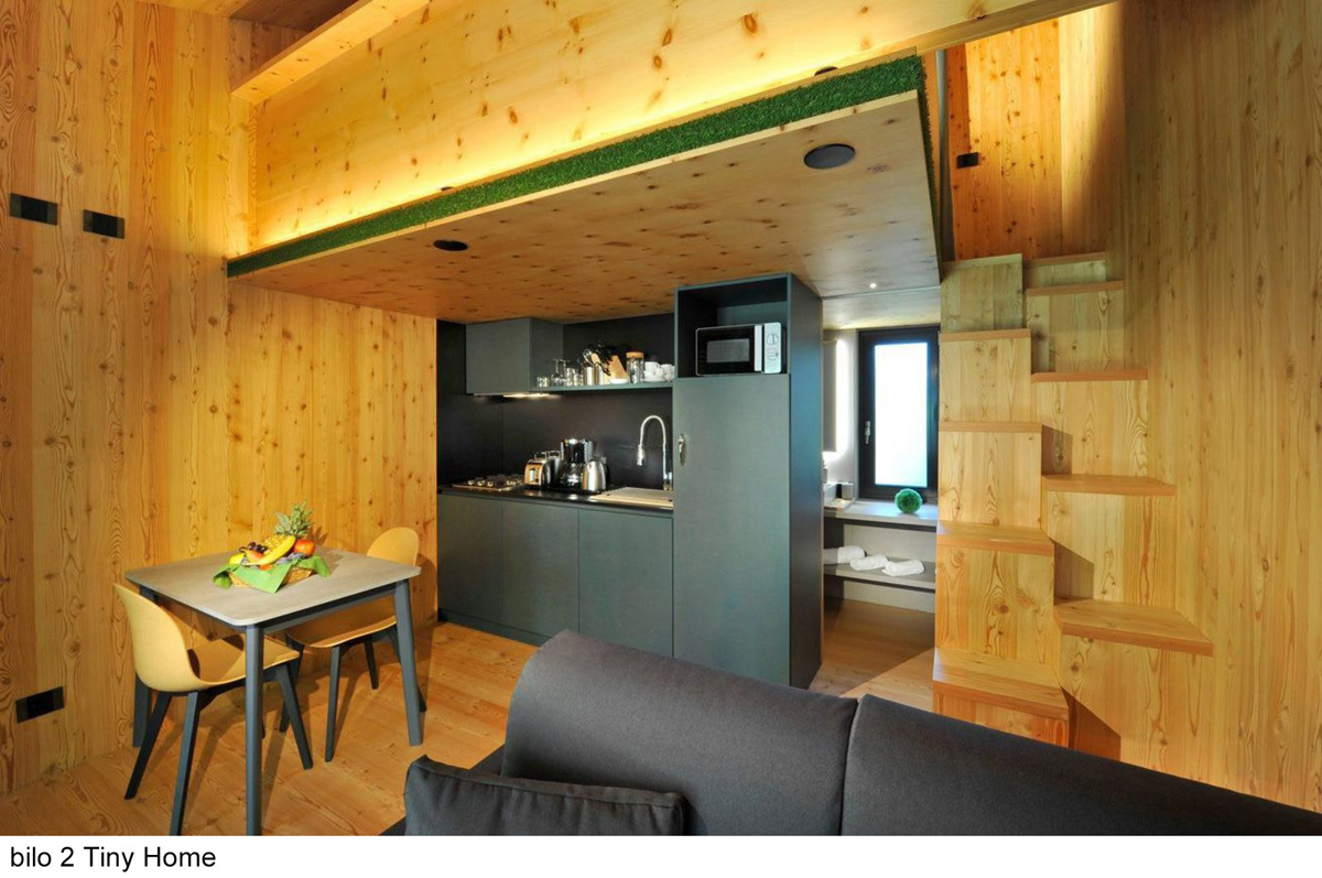 Úplne jedinečný ubytovací komplex pozostávajúci z apartmánových budov s apartmánmi typu trilo Pine a Larch, mobilných domov resp. chaletov Graz a Wien a samostatne stojacich drevených domčekov Tiny Home. V centrálnej budove sa nachádza recepcia, bistro, terasa, konferenčná miestnosť, úschovňa lyží a detská herňa. Uvedené vzdialenosti sú merané od recepcie.