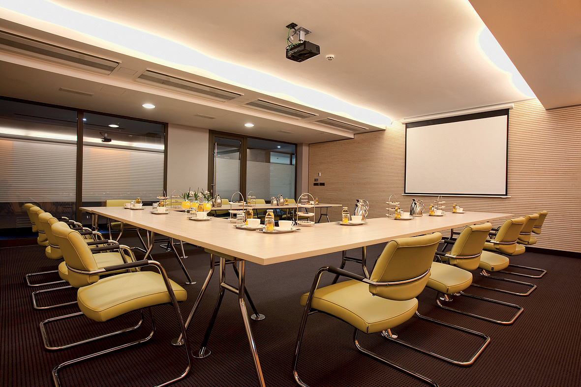 recepcia, veľká lobby s krbom, vyhradená reštaurácia, reštaurácia à la carte, bar, cukráreň, hotelové kino, 7× seminárna miestnosť s projekčnou technikou, lyžiareň, výťah, vyhradené parkovisko, garáže*, nabíjacia stanica* pre elektromobily, wi-fi pripojenie na internet