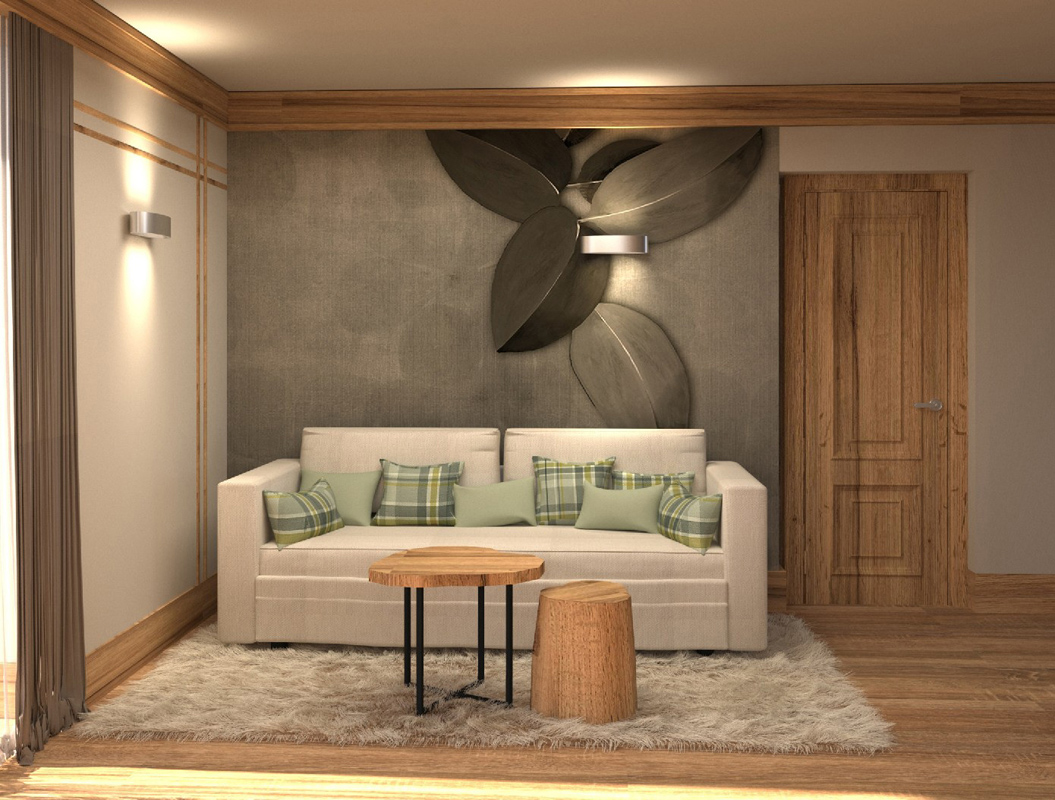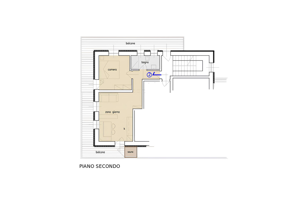 41 m² - 2 spálne s manželskou posteľou alebo 2 samostatnými lôžkami, obývacia izba s kuchynským kútom a rozkladacou pohovkou pre 2 osoby, sociálne zariadenie so sprchou, balkón s privátnou bio saunou; apartmán sa nachádza v podkroví