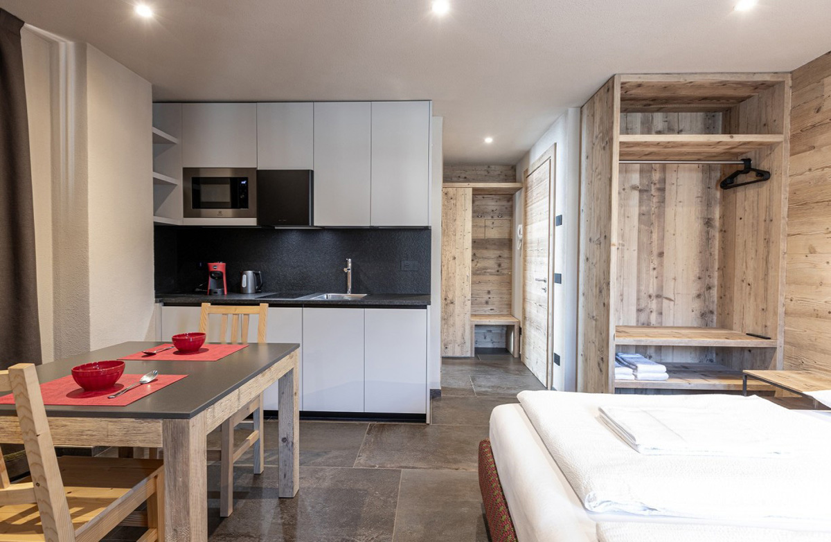 16 m² - izba s manželskou posteľou alebo 2 samostatnými lôžkami, sociálne zariadenie so sprchou; apartmán sa nachádza na prízemí, bez kuchynského kúta a balkóna či terasy; odporúčame kombinovať s inou typológiou apartmánu
