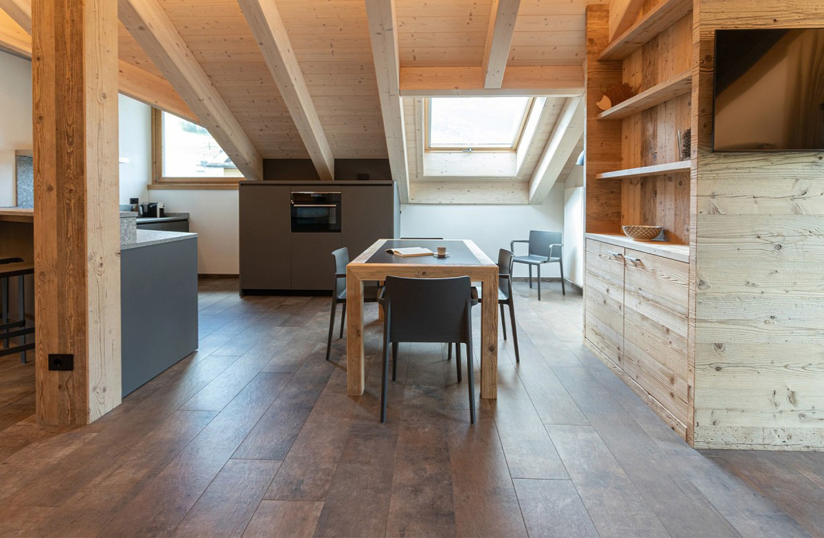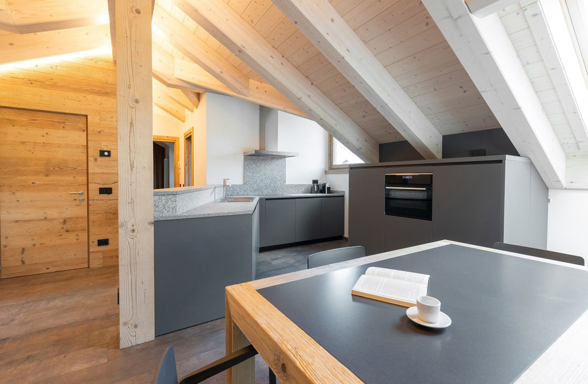 75 m² - 1 spálňa s manželskou posteľou, 1 spálňa so 2 samostatnými lôžkami, obývacia izba s kuchynským kútom a rozkladacím gaučom pre 1 osobu, sociálne zariadenie so sprchou, balkón; apartmán sa nachádza v podkroví